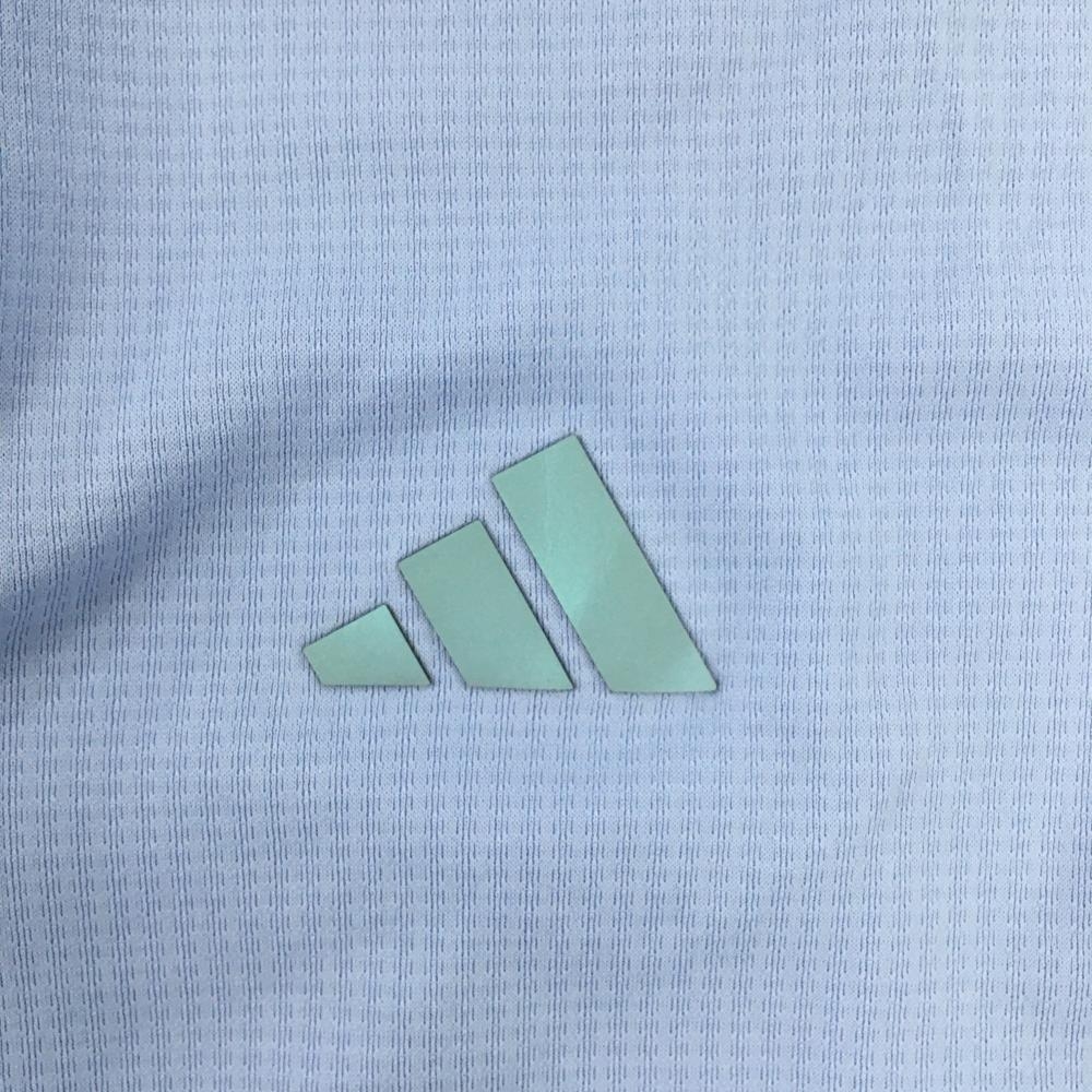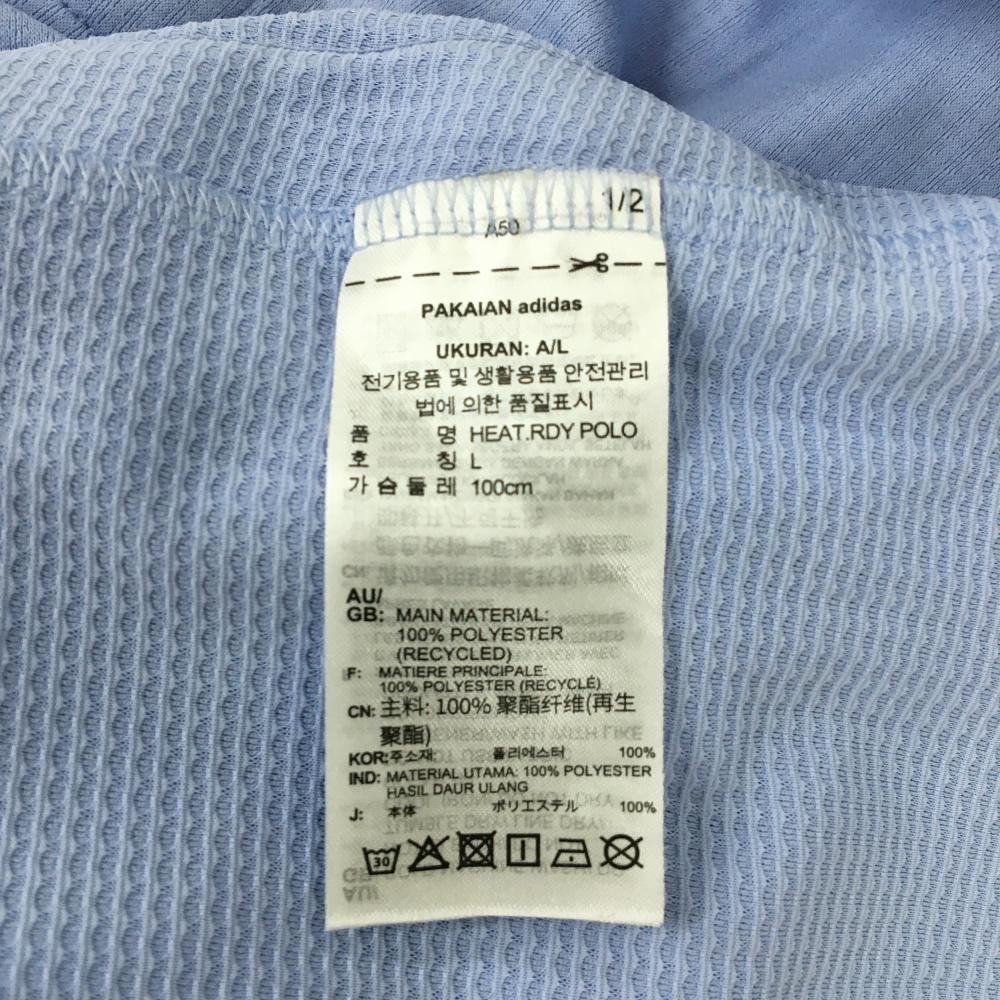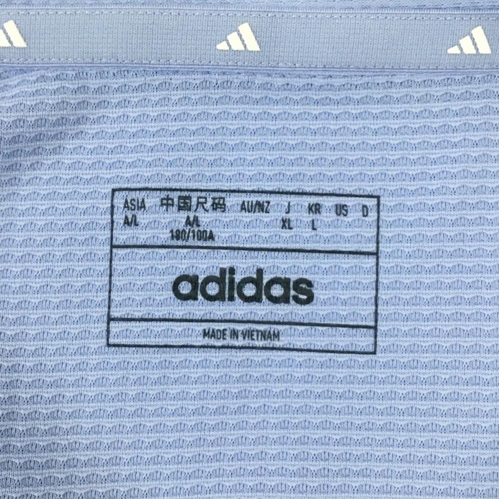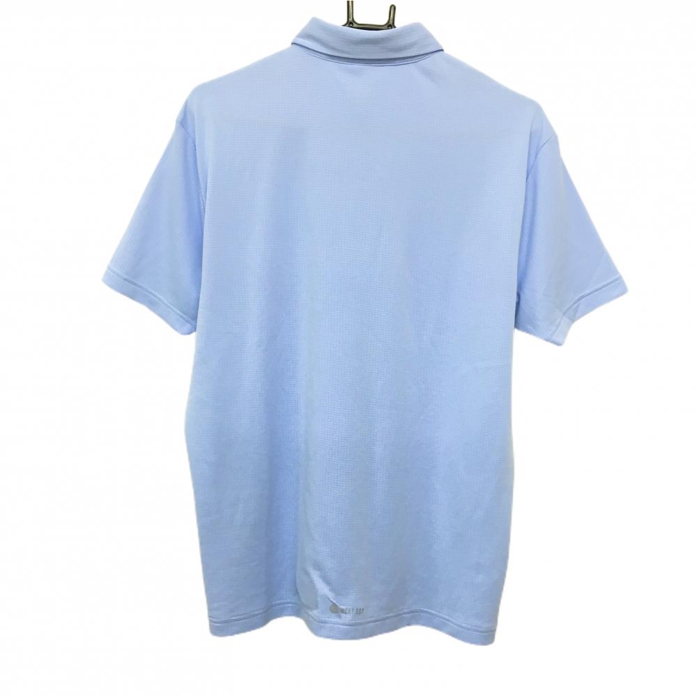 【超美品】アディダス 半袖ポロシャツ ライトブルー系 サイドプリント 立体ロゴ メンズ XL ゴルフウェア adidas