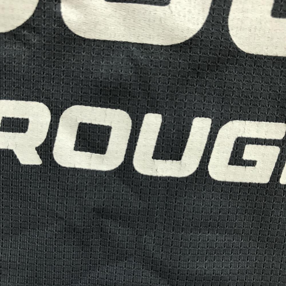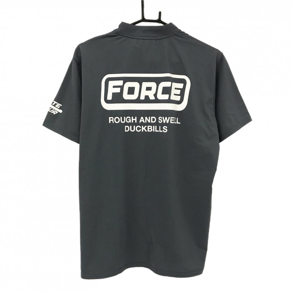 【美品】ラフアンドスウェル 半袖ポロシャツ グレー×白 スタンドカラー フロントロゴ メンズ L ゴルフウェア rough&swell