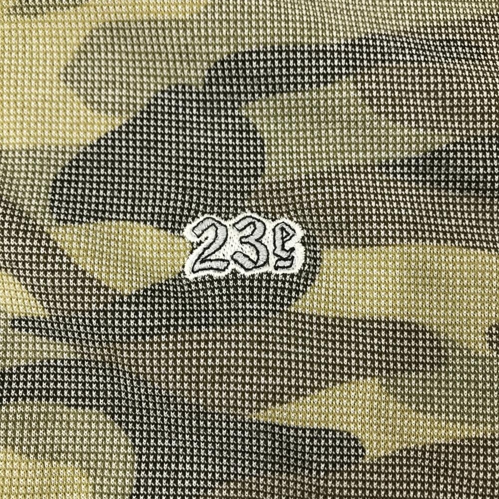 23区スポーツ 半袖ポロシャツ ライトカーキ×ブラウン カモフラ 迷彩 スナップボタン メンズ 2(L) ゴルフウェア 23区