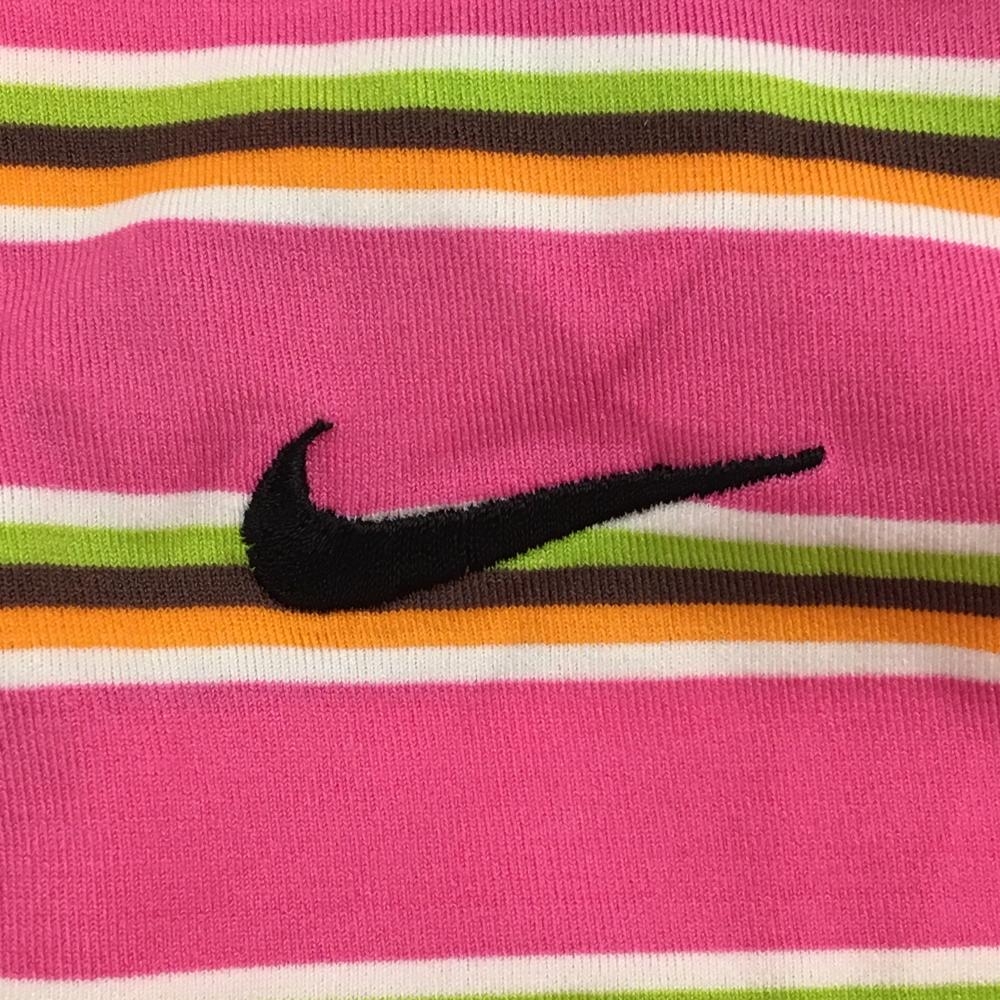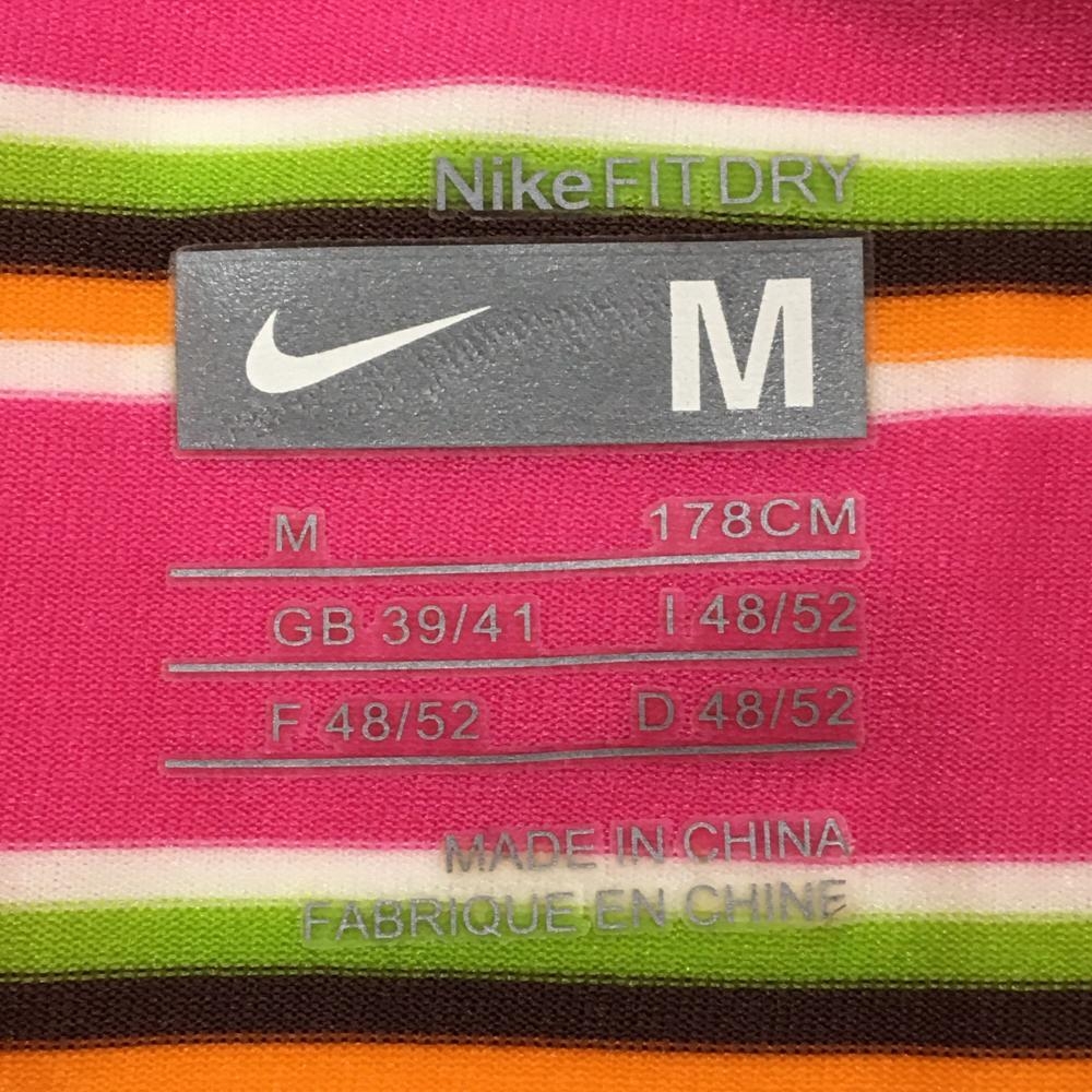 【美品】ナイキ 半袖ポロシャツ ピンク×ライトグリーン ボーダー ストレッチ メンズ M ゴルフウェア NIKE