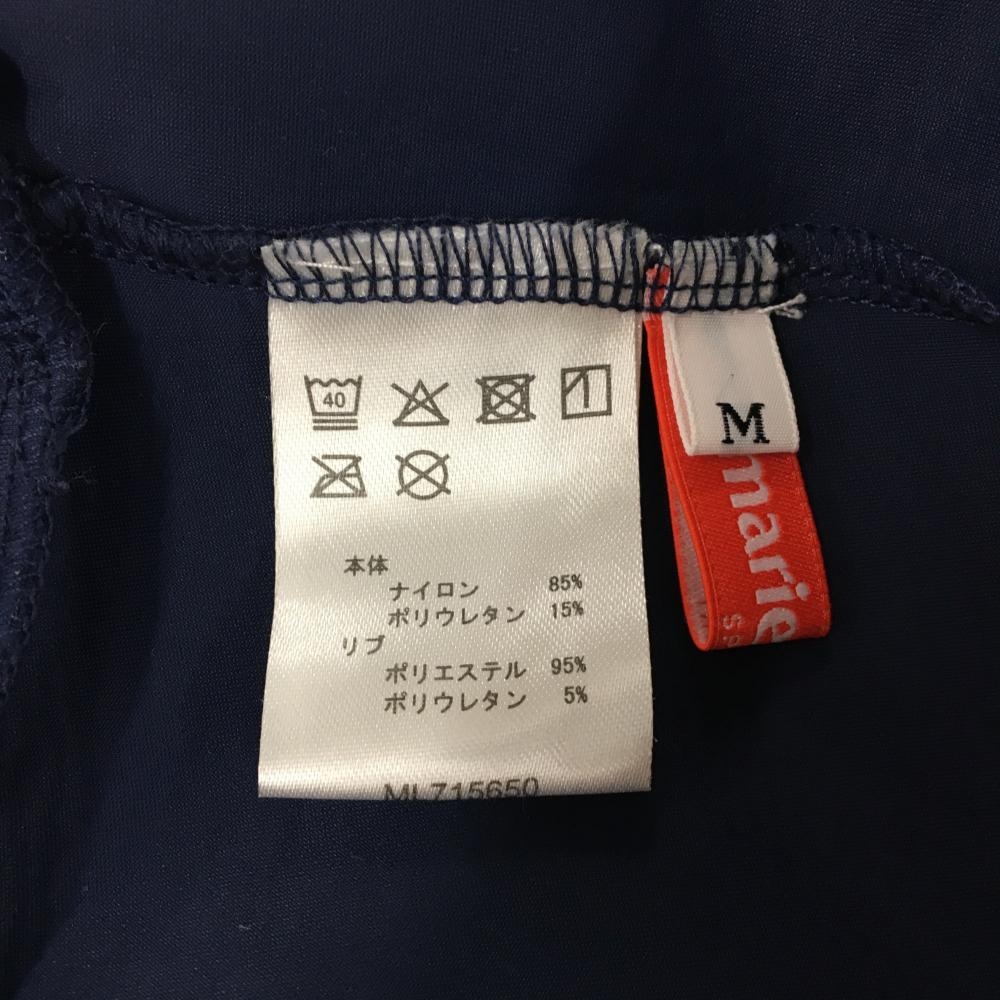 【美品】マリクレールスポール 半袖ハイネックシャツ ネイビー×白 胸元ロゴ レディース M ゴルフウェア marie claire