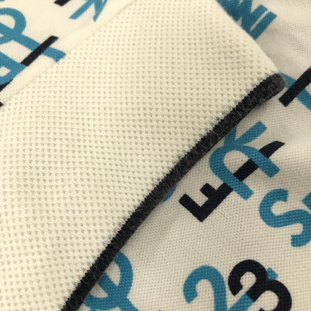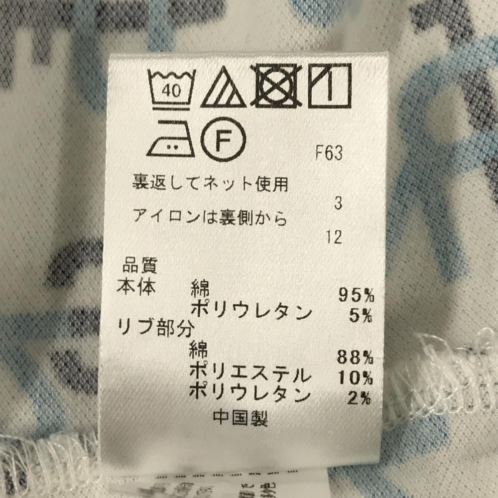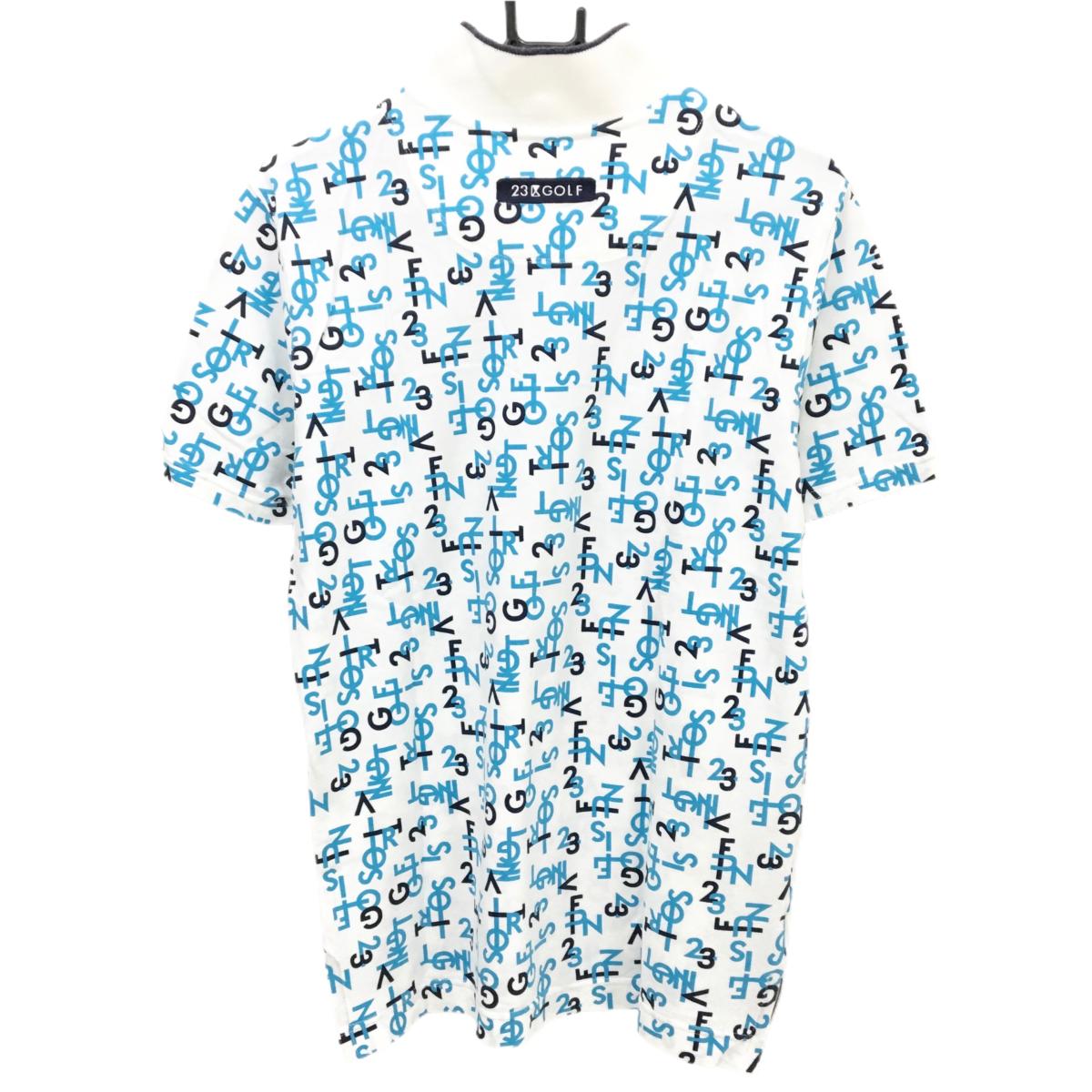 23区ゴルフ 半袖ハイネックシャツ 白×ライトブルー×ネイビー ロゴ総柄 ハーフジップ メンズ L ゴルフウェア 23区