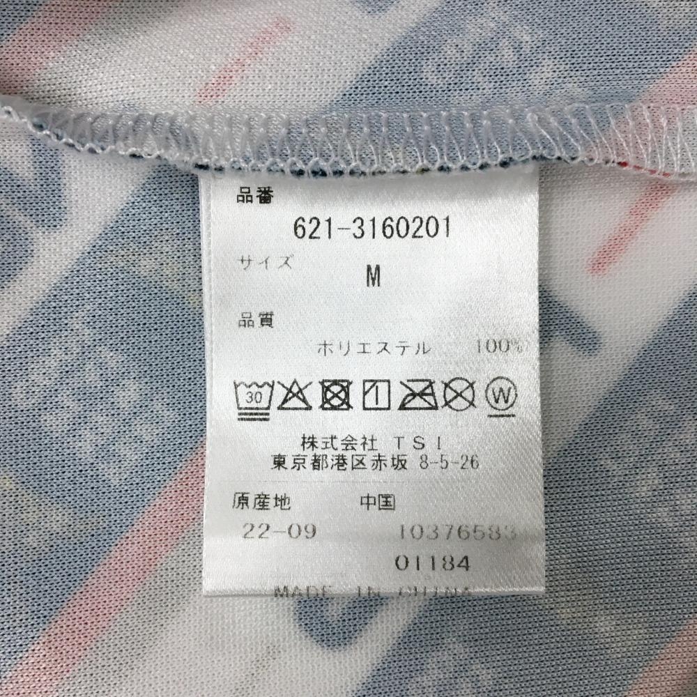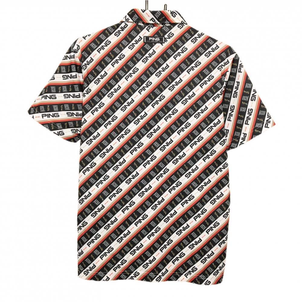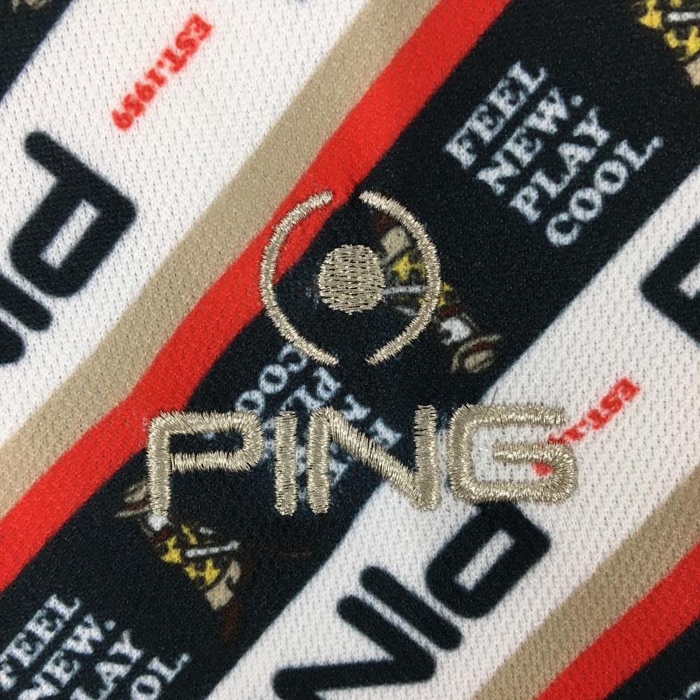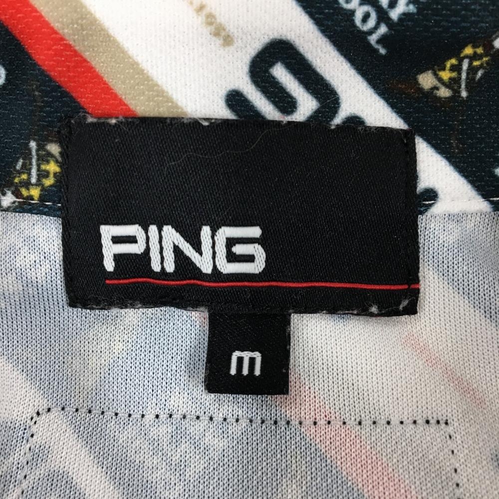 【超美品】ピン 半袖ポロシャツ 白×ネイビー×レッド 斜めロゴストライプ ロゴ刺しゅう メンズ M ゴルフウェア PING