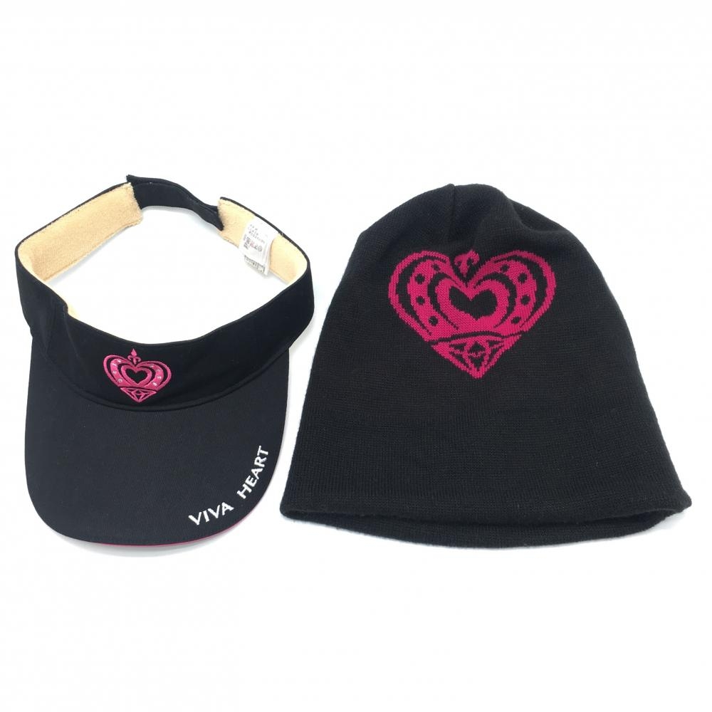 【美品】ビバハート 3WAYサンバイザー 黒×ピンク ニット部 ロゴ刺しゅう レディース 40(フリー) ゴルフウェア VIVA HEART
