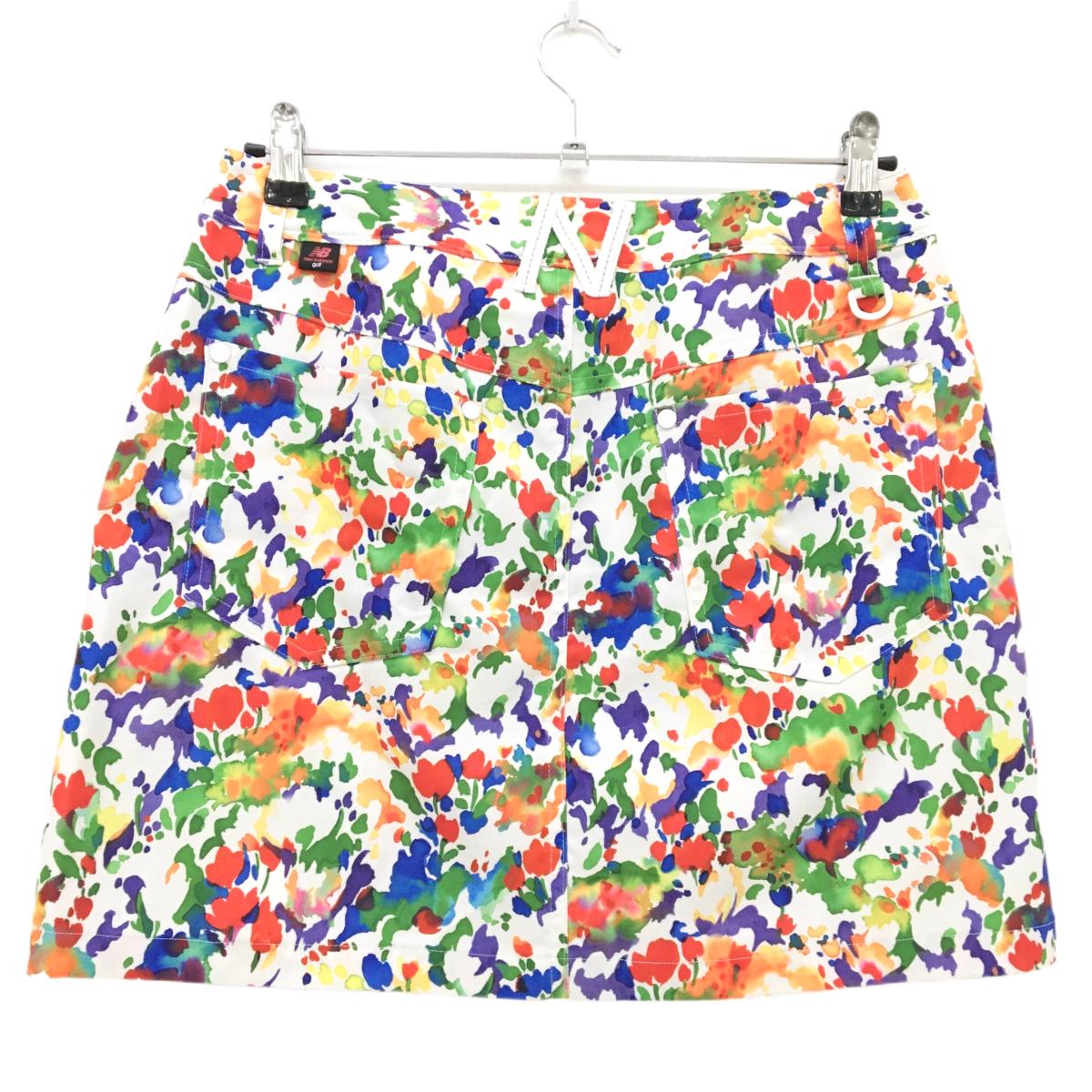 【超美品】ニューバランスゴルフ スカート 白×マルチカラー 総柄 ストレッチ レディース 2(L) ゴルフウェア New Balance