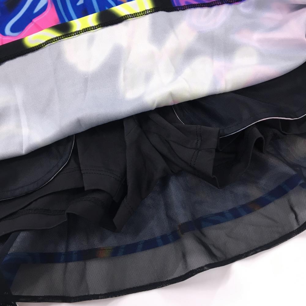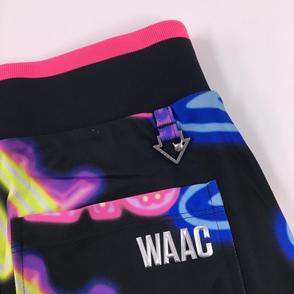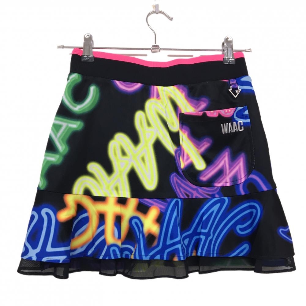 【美品】ワック スカート 黒×マルチカラー 総柄 ウエストゴム 内側インナーパンツ レディース 0(XS) ゴルフウェア WAAC