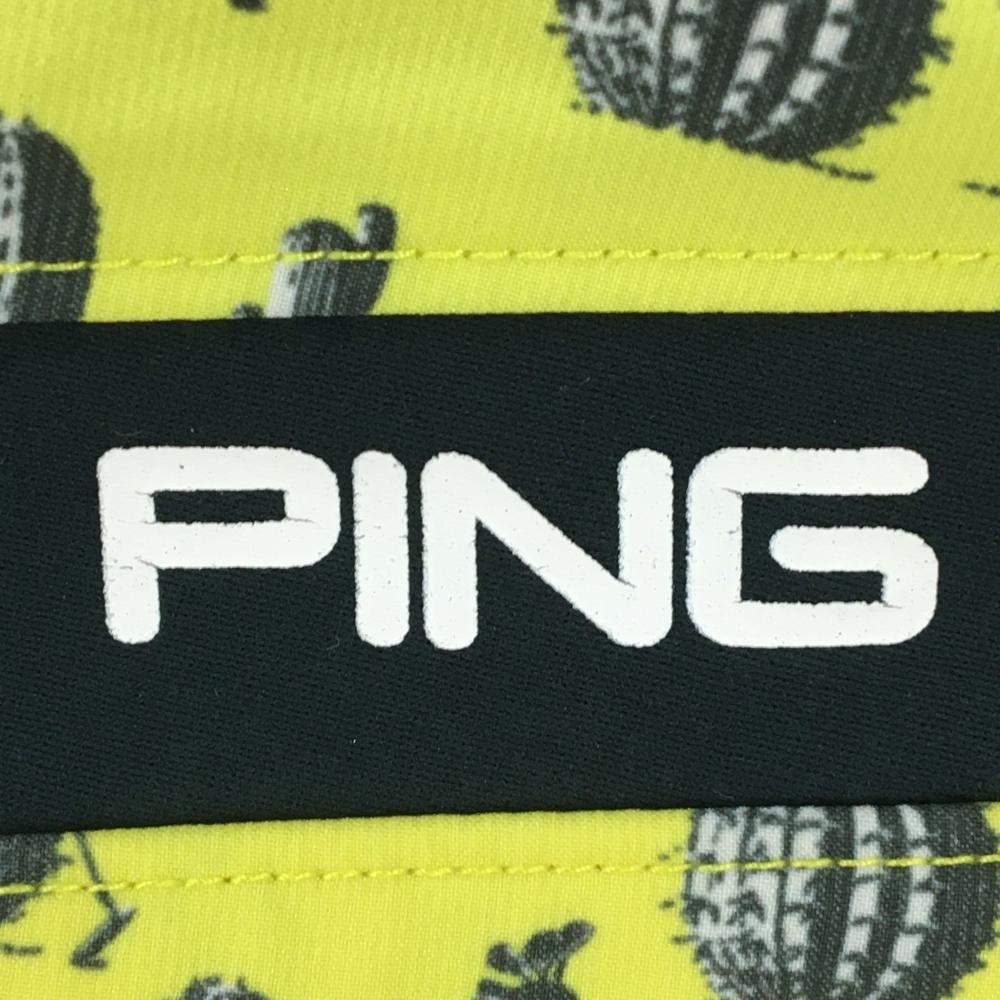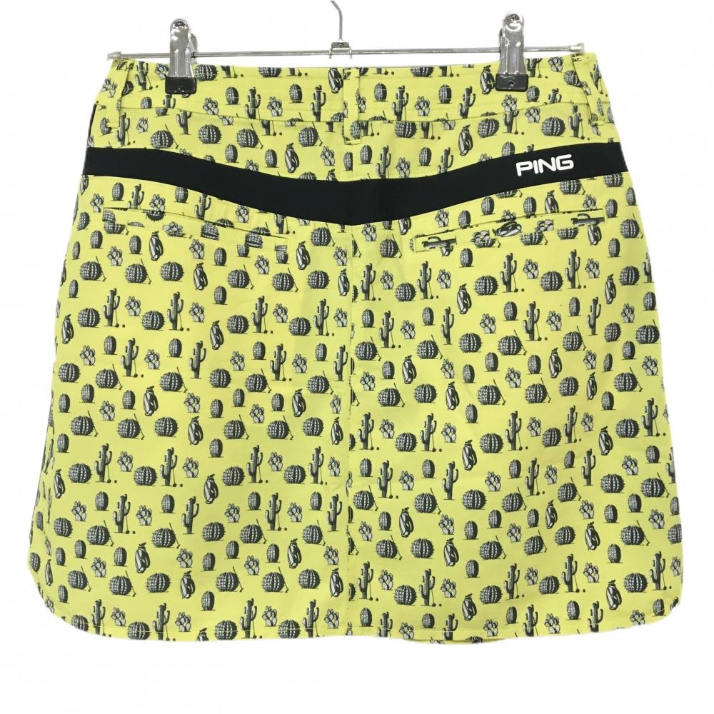 【美品】ピン スカート イエロー×黒 サボテン柄 サイド切替 レディース M ゴルフウェア PING