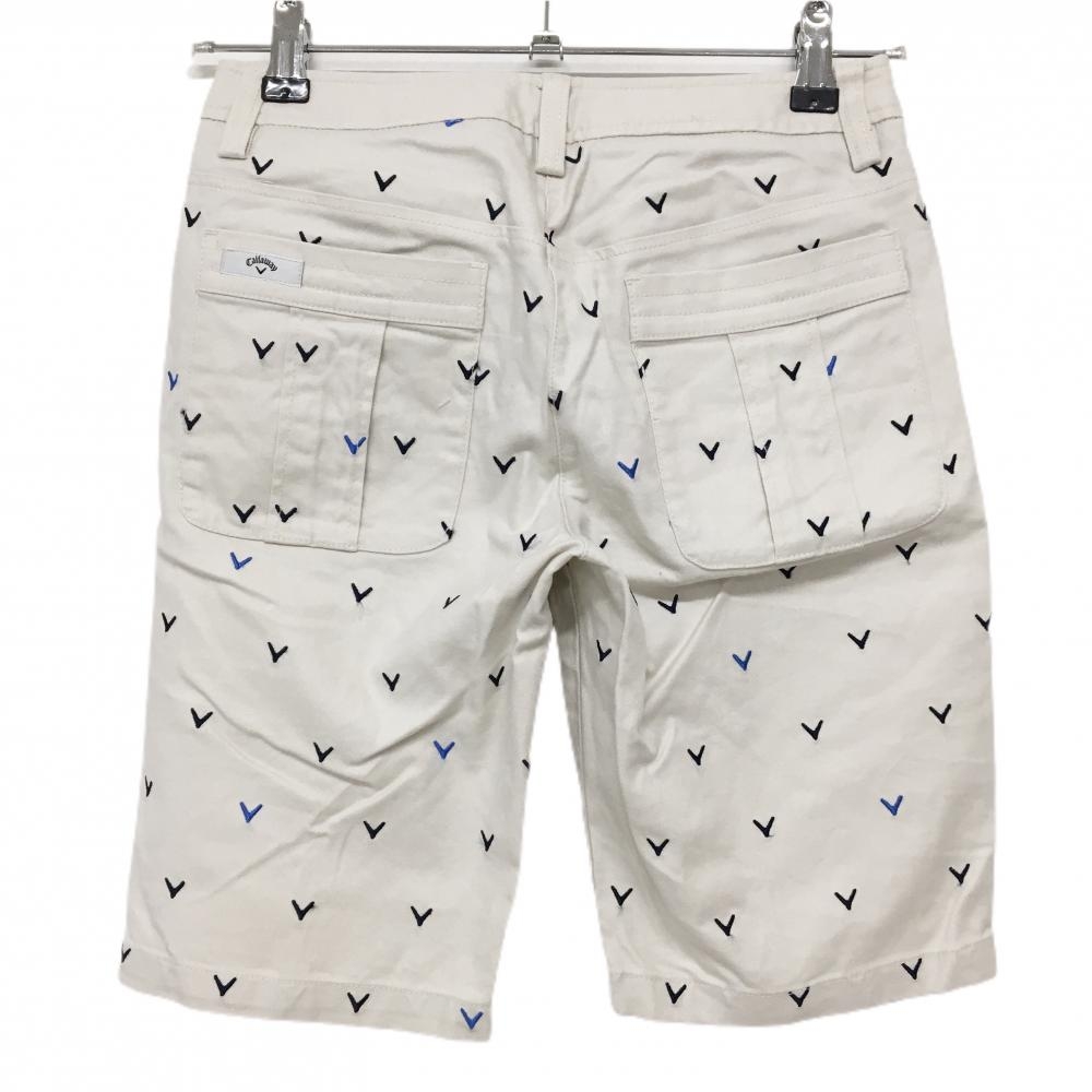 【美品】キャロウェイ ショートパンツ ライトベージュ×ネイビー ロゴ刺しゅう総柄 レディース SS ゴルフウェア Callaway