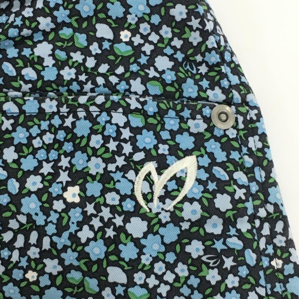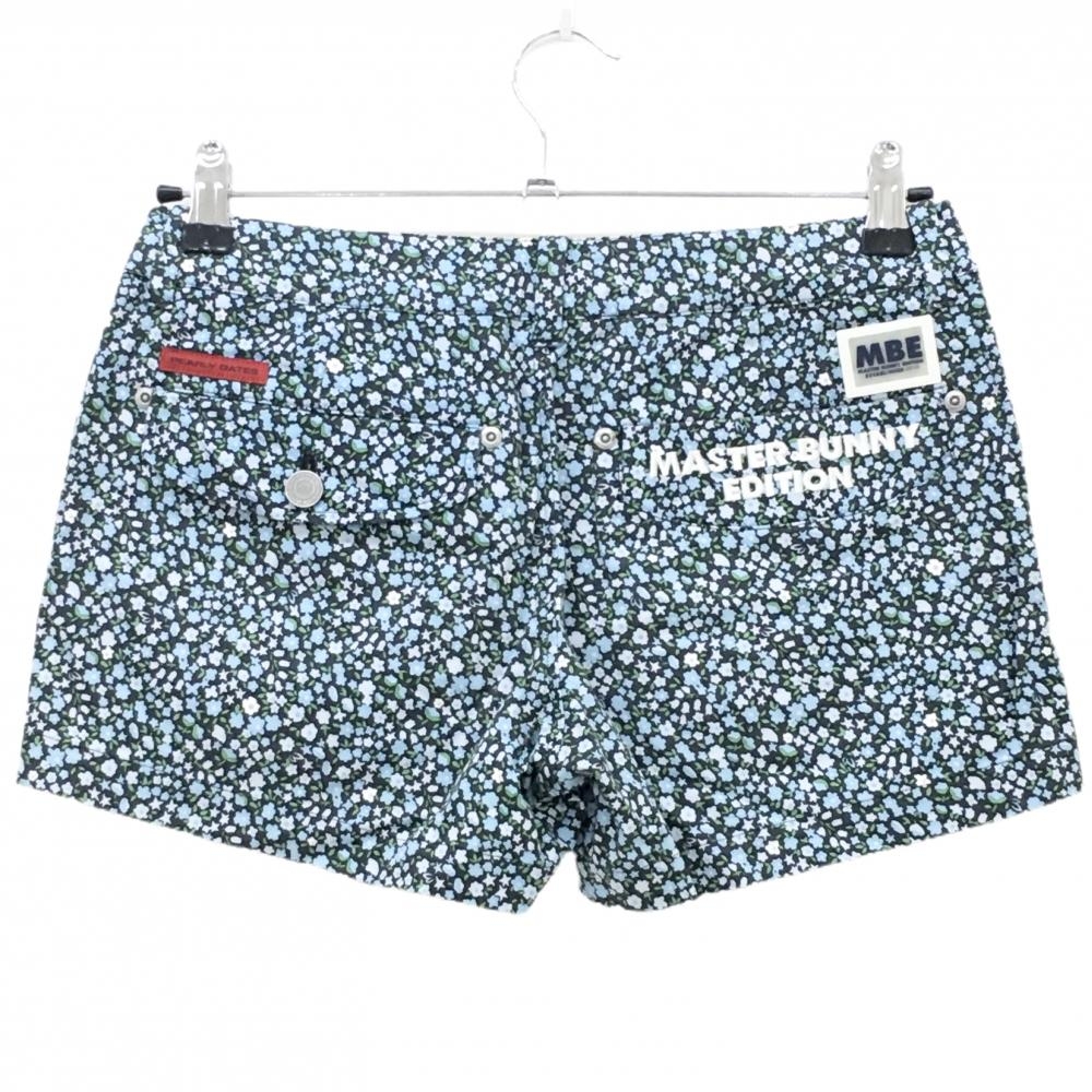 【美品】マスターバニー ショートパンツ ネイビー×ライトブルー系 小花柄 レディース 0(S) ゴルフウェア MASTER BUNNY EDITION