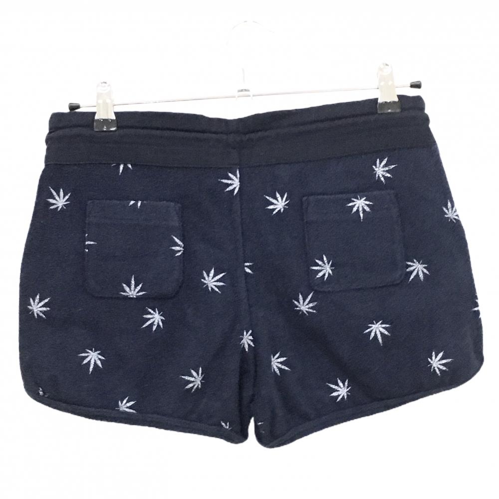 マークアンドロナ ショートパンツ ネイビー×白 リーフ柄 パイル地 レディース M ゴルフウェア MARK&LONA
