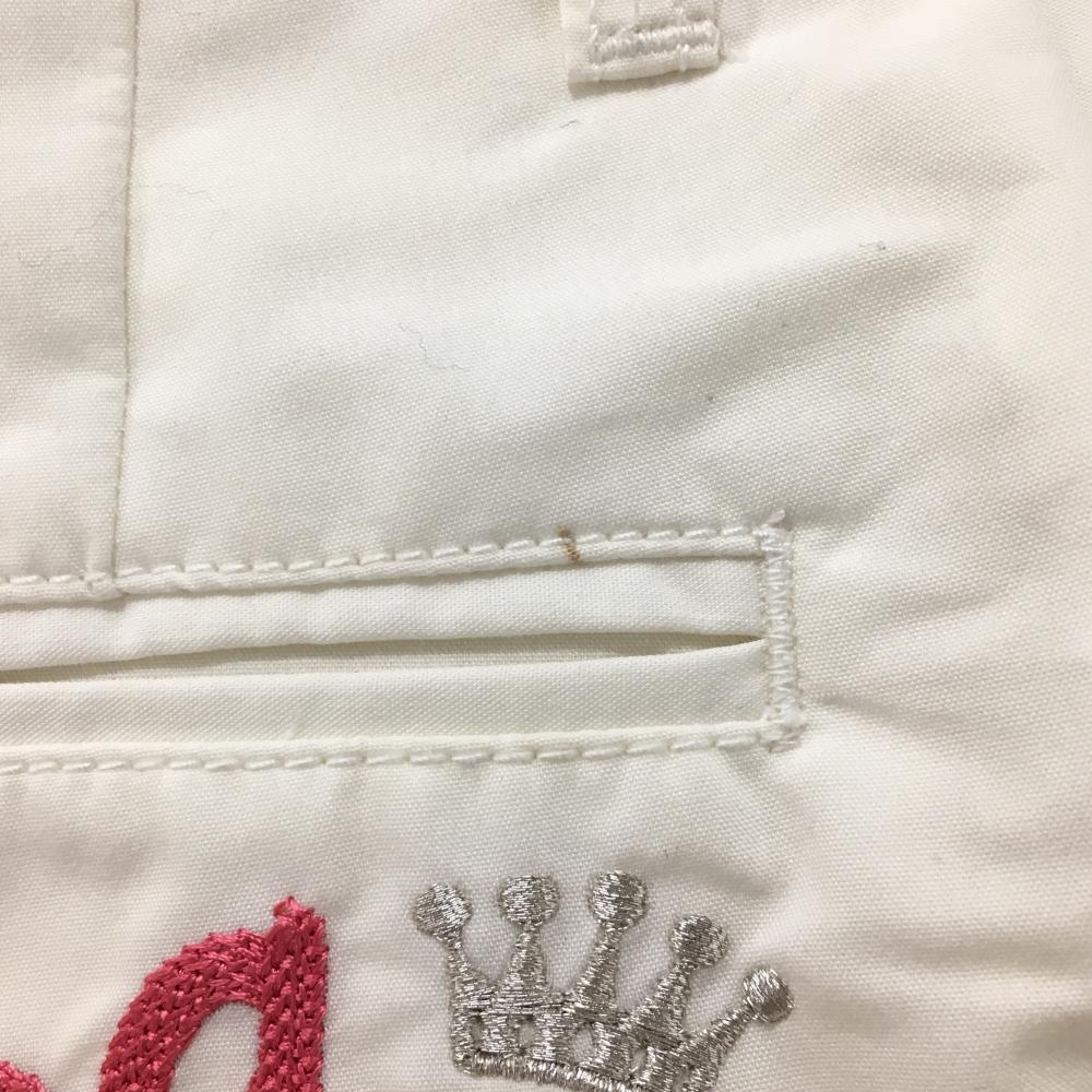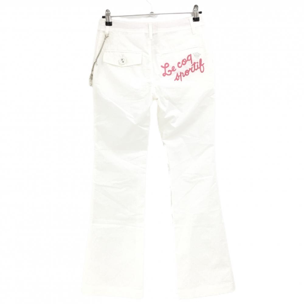 【新品】ルコックゴルフ パンツ 白×ピンク 複数ポケット チャーム付き レディース 9 ゴルフウェア le coq sportif