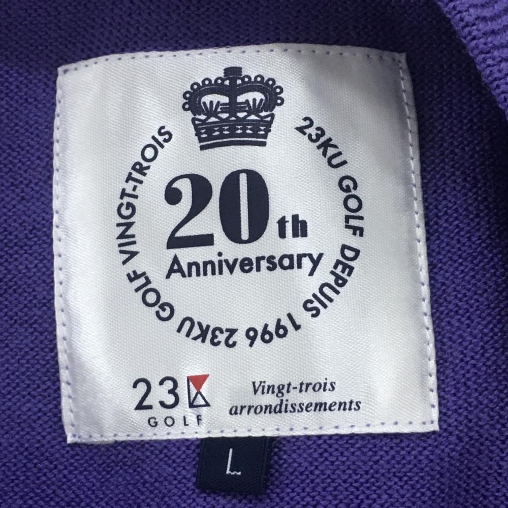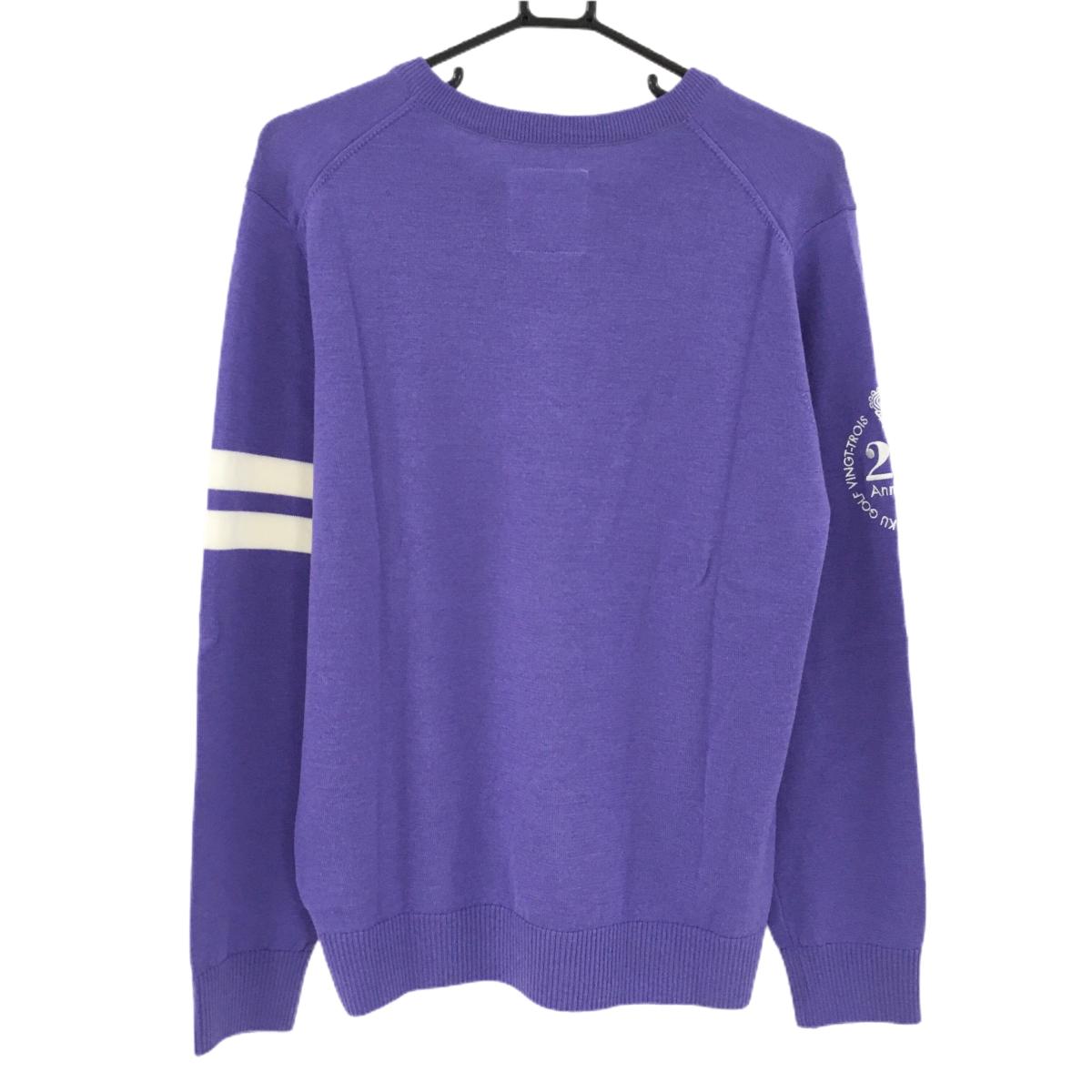 【超美品】23区ゴルフ セーター パープル×白 20周年 ウール100% ニット メンズ L ゴルフウェア 23区