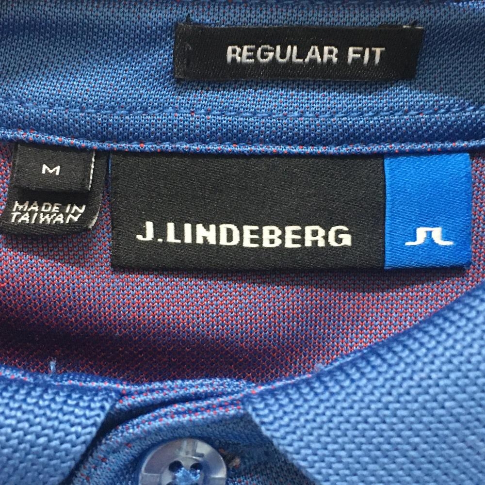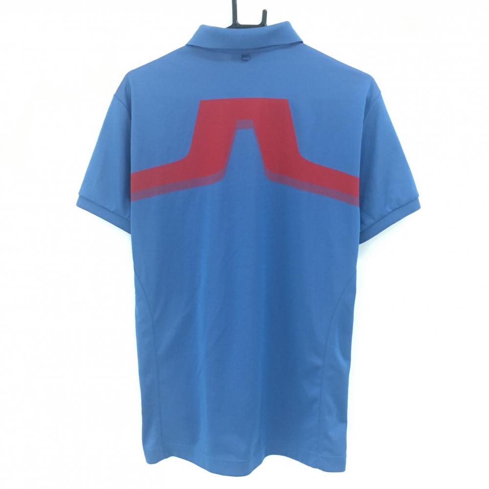 【超美品】ジェイリンドバーグ 半袖ポロシャツ ブルー×レッド 背面ビッグロゴ メンズ M ゴルフウェア J.LINDEBERG
