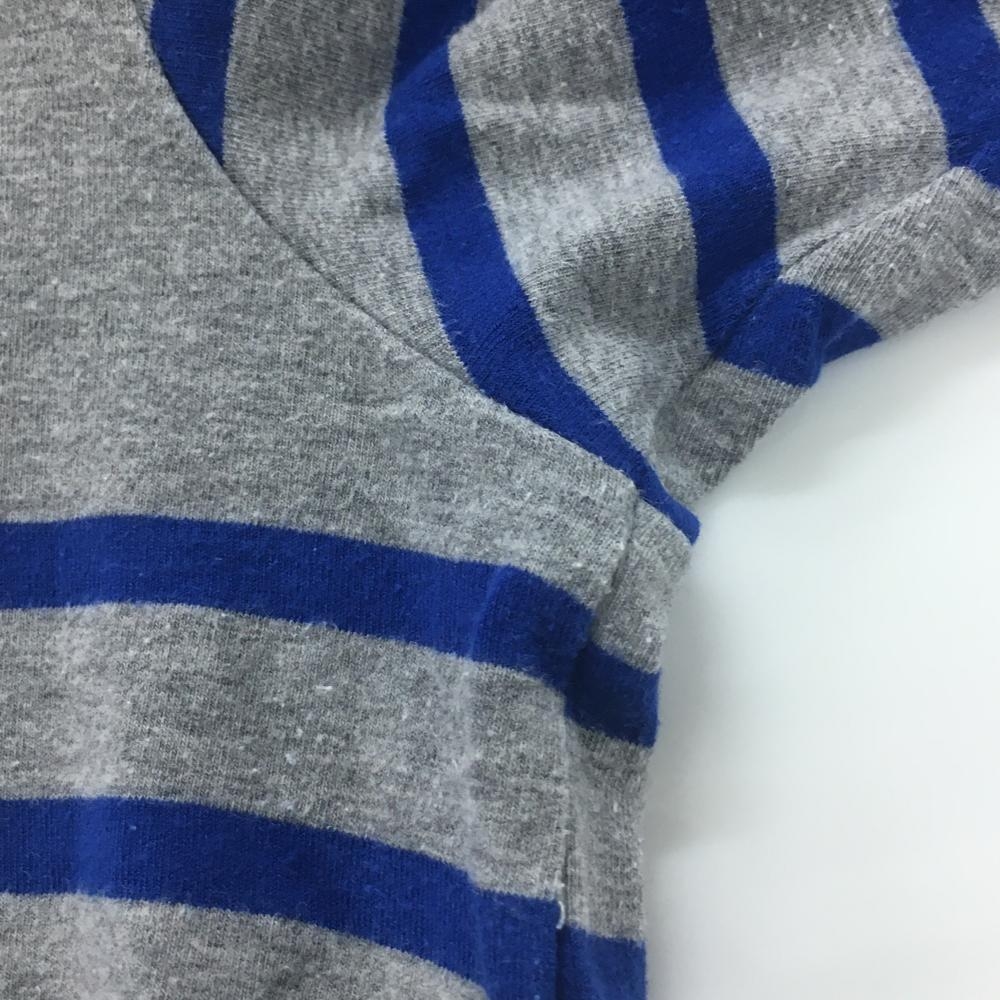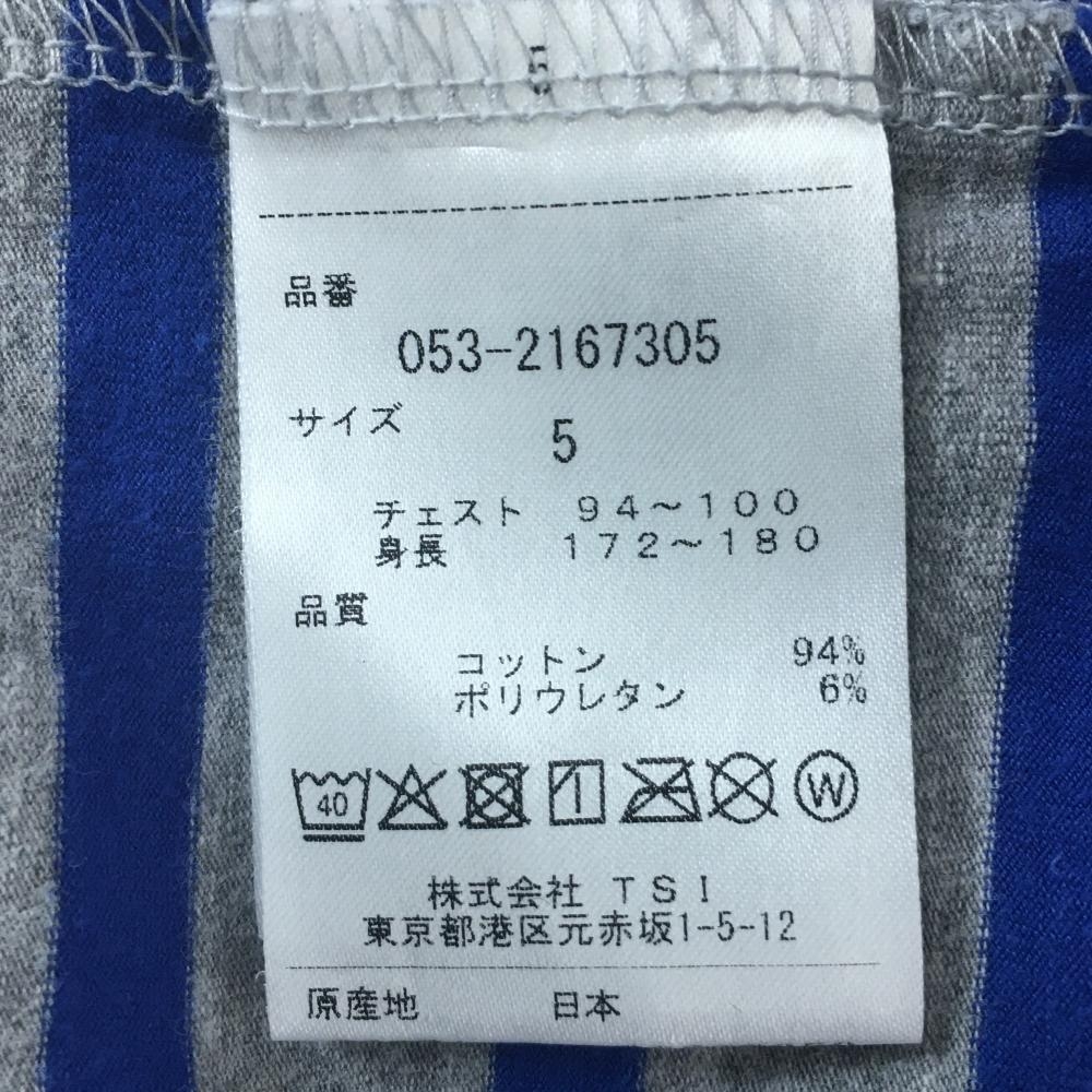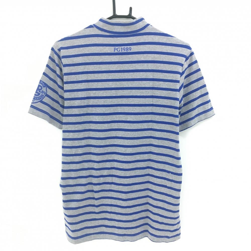 【美品】パーリーゲイツ 半袖ハイネックシャツ グレー×ブルー ボーダー ストレッチ メンズ 5(L) ゴルフウェア PEARLY GATES