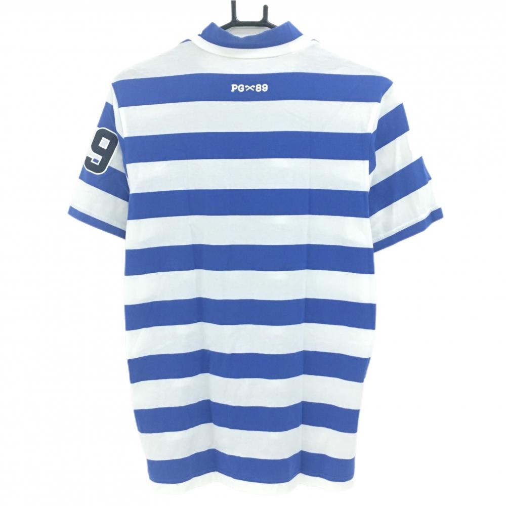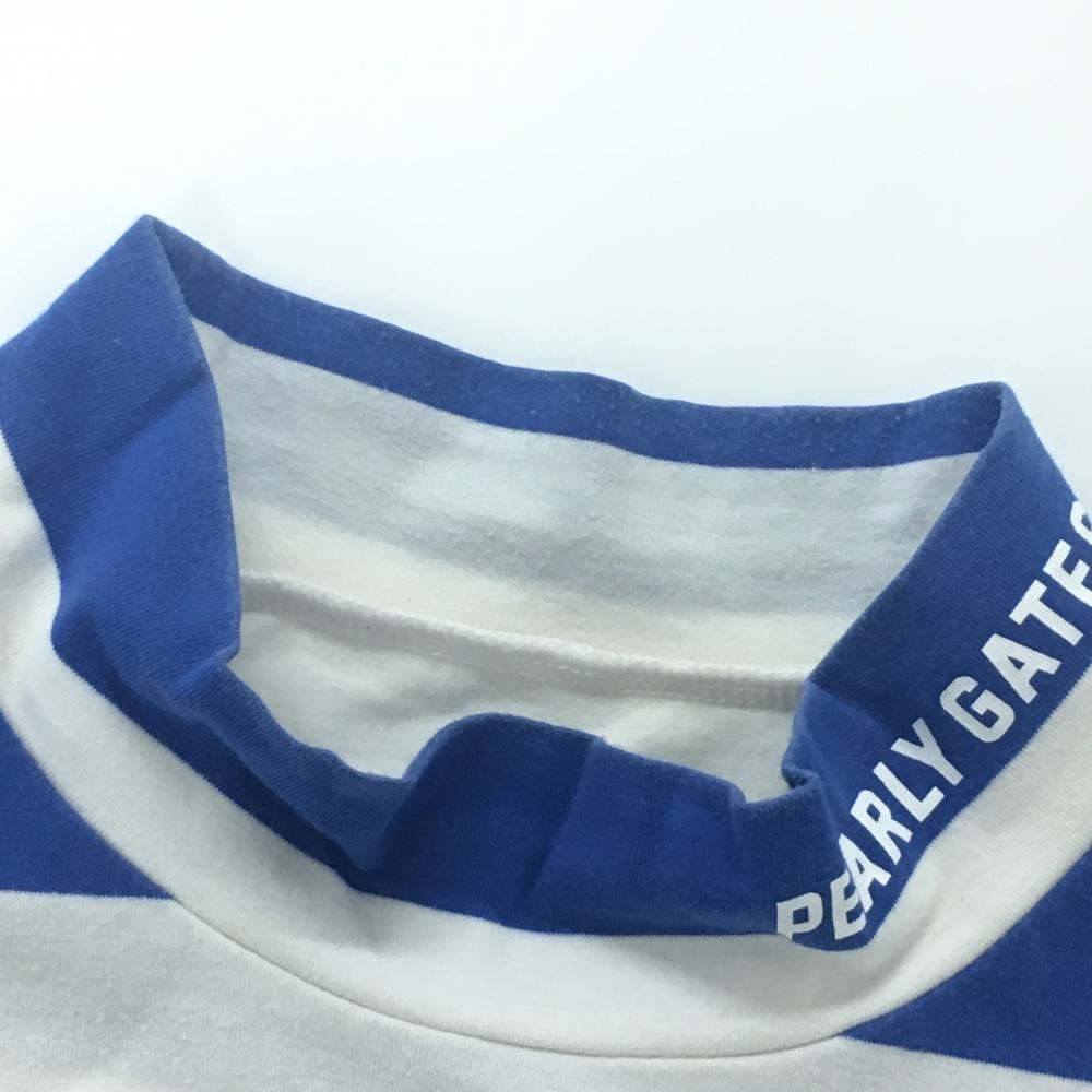 パーリーゲイツ 半袖ハイネックシャツ 白×ブルー ボーダー ストレッチ メンズ 5(L) ゴルフウェア PEARLY GATES