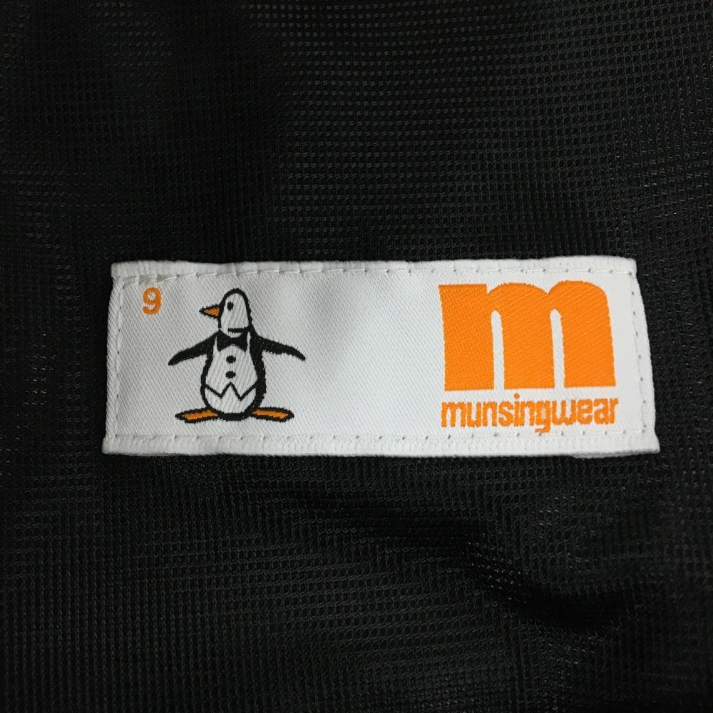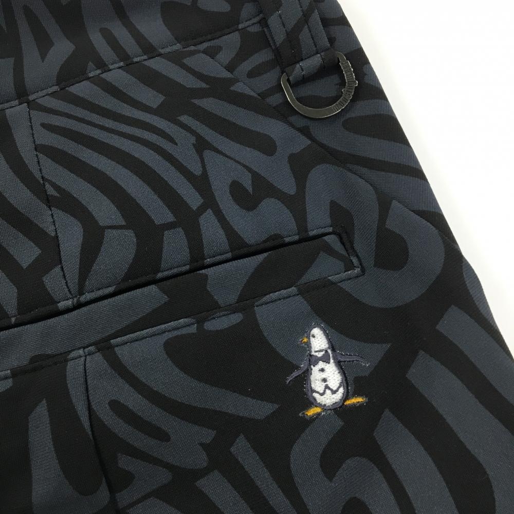 【超美品】マンシングウェア ハーフパンツ 黒×グレー 総柄 ペンギン刺しゅう ストレッチ レディース 9 ゴルフウェア Munsingwear