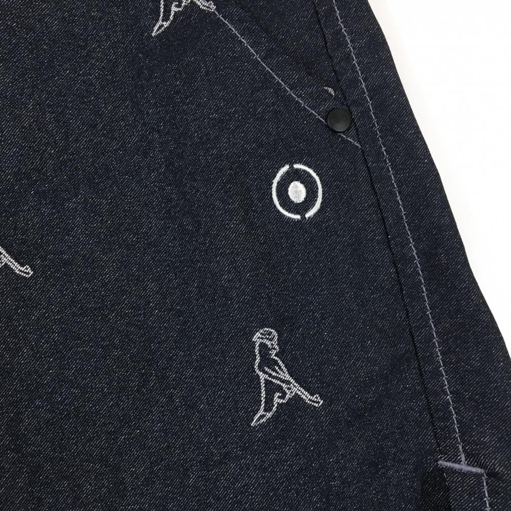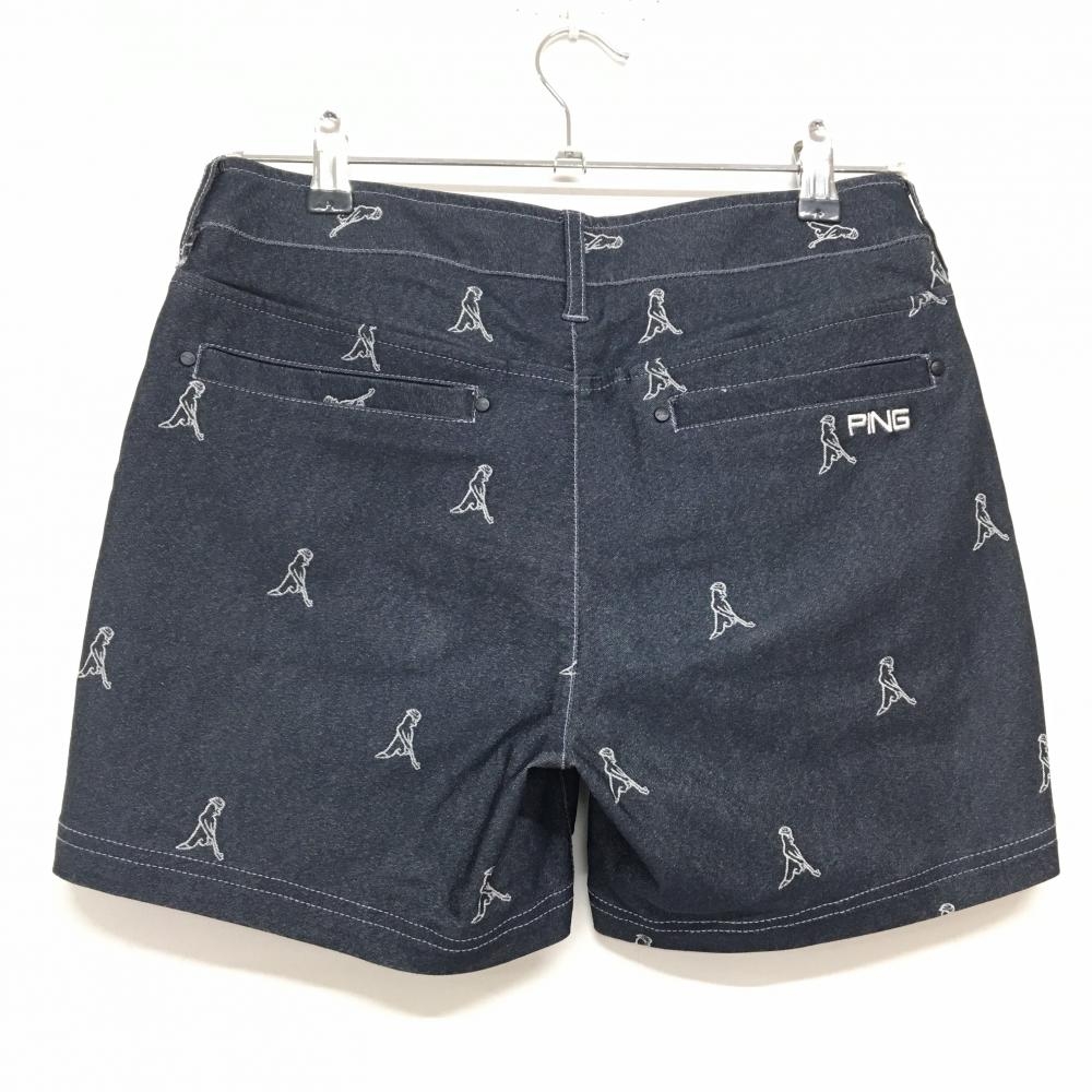 【超美品】ピン ハーフパンツ ダークネイビー×白 総柄 デニム風 ロゴ刺しゅう ストレッチ レディース M ゴルフウェア PING