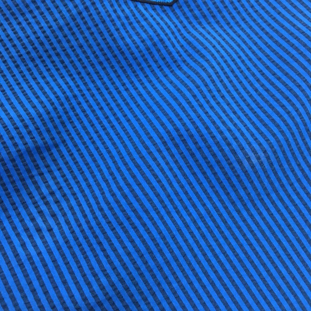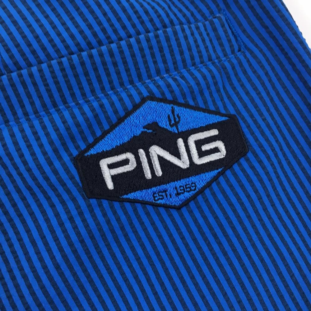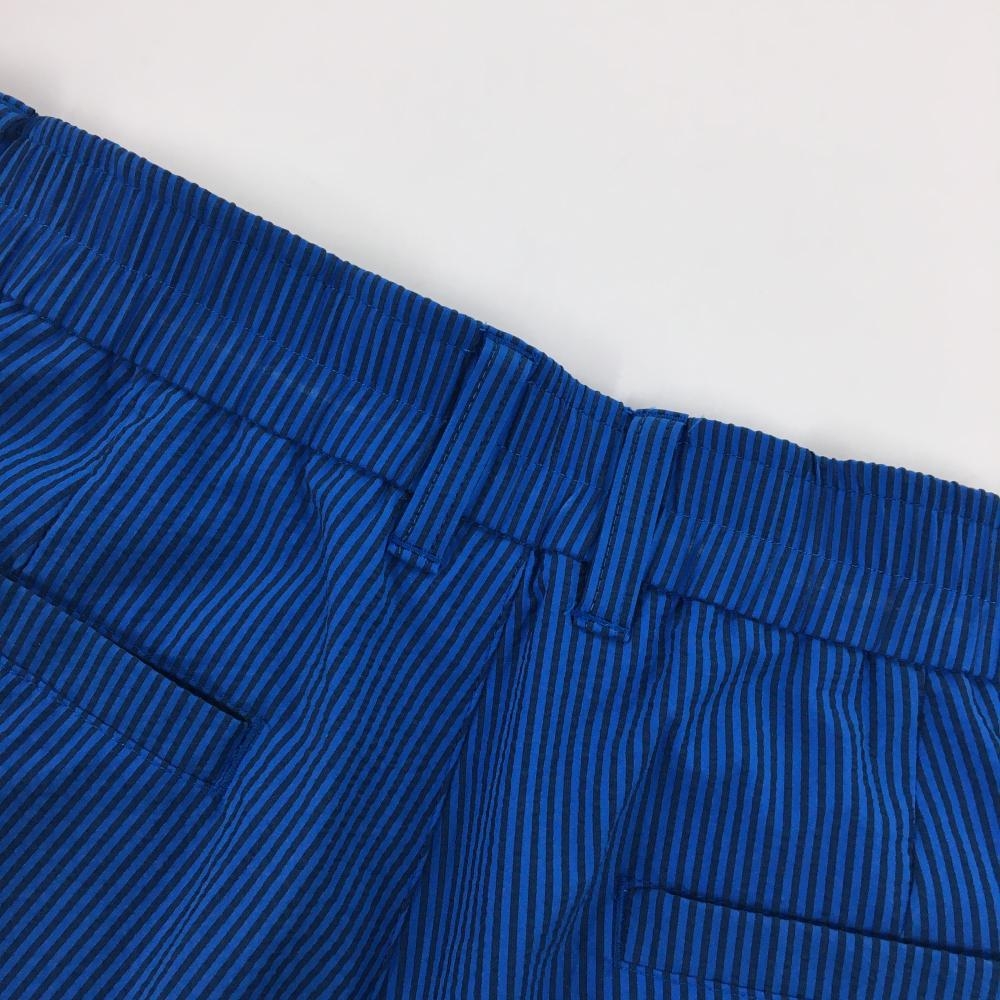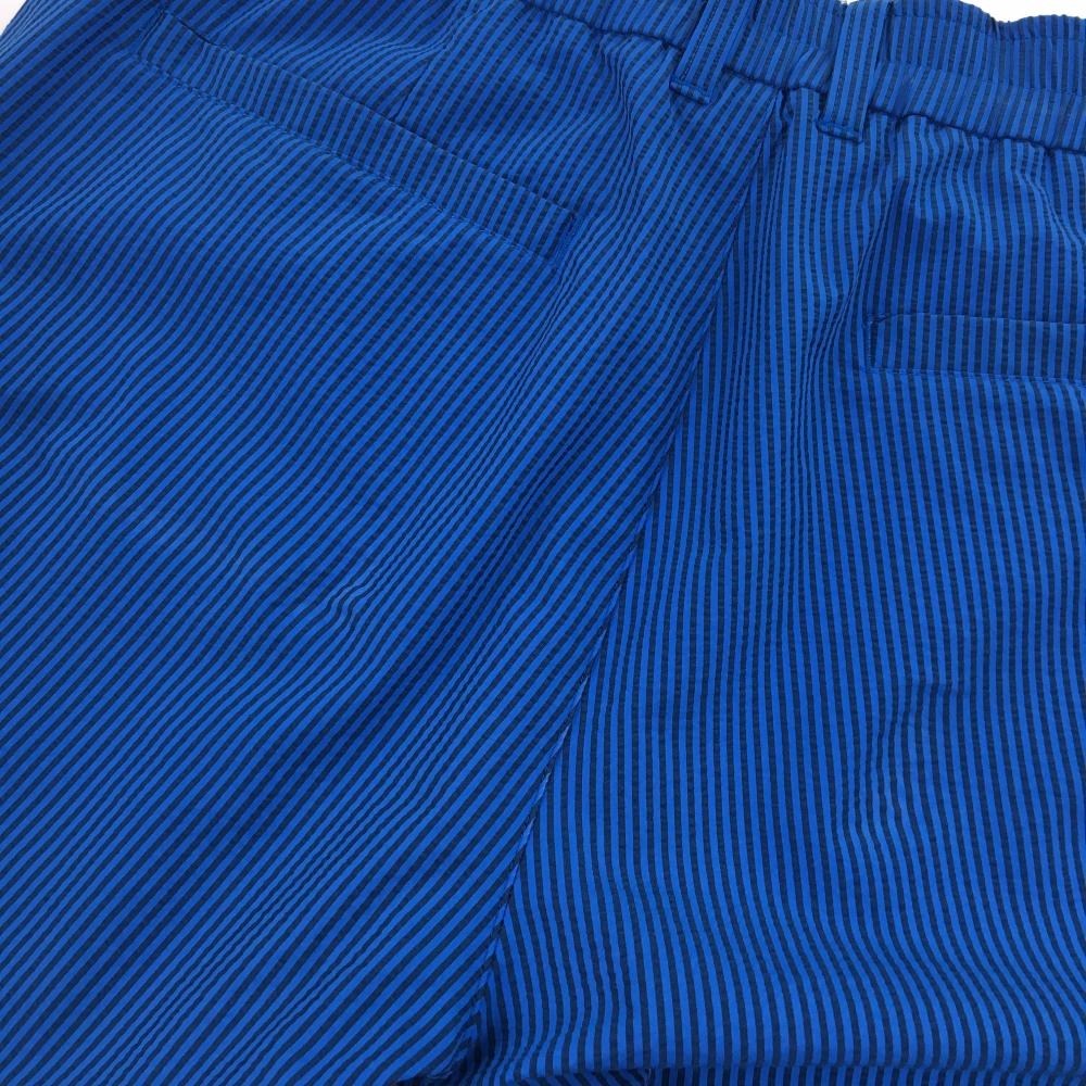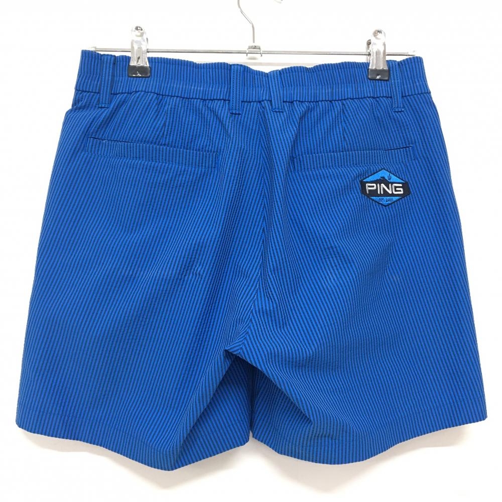 【美品】ピン ハーフパンツ ブルー×ネイビー ストライプ サッカー生地 ストレッチ レディース S ゴルフウェア PING
