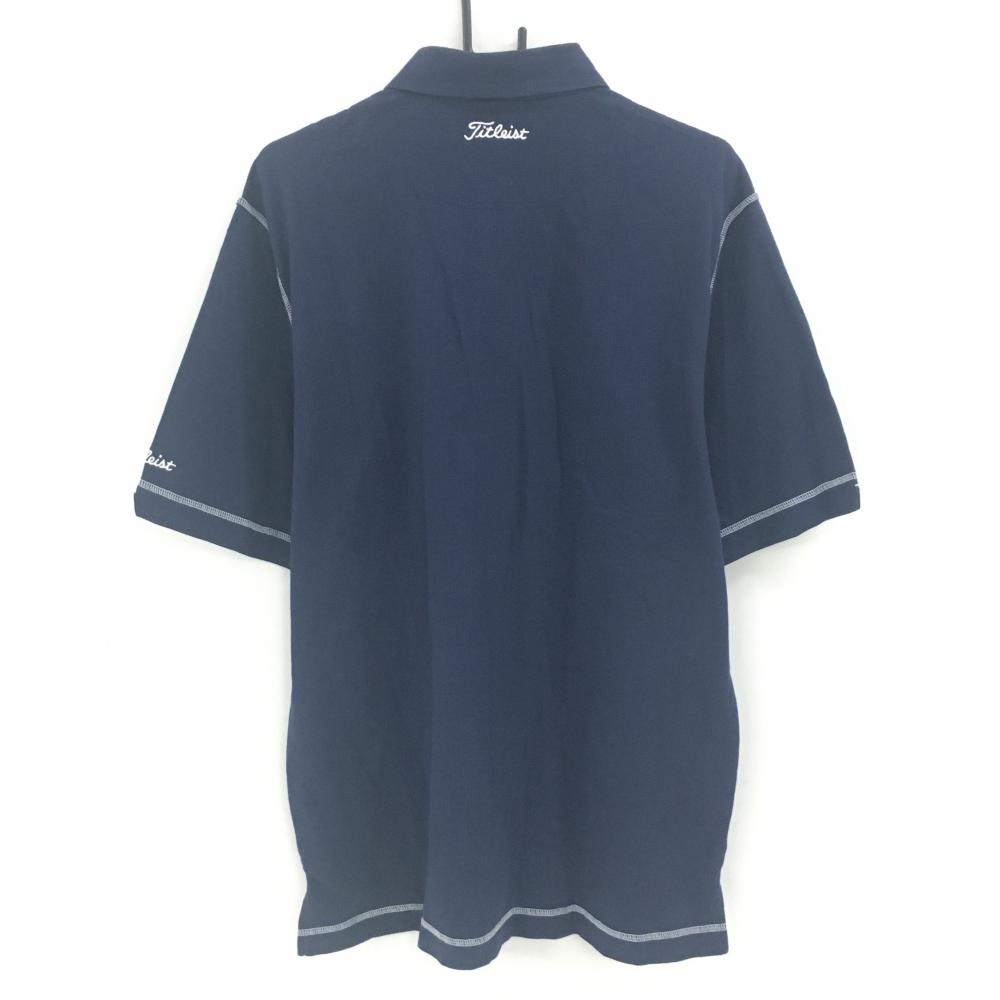 タイトリスト 半袖ポロシャツ ネイビー×白 格子織生地 ロゴ刺しゅう メンズ LL ゴルフウェア TITLEIST