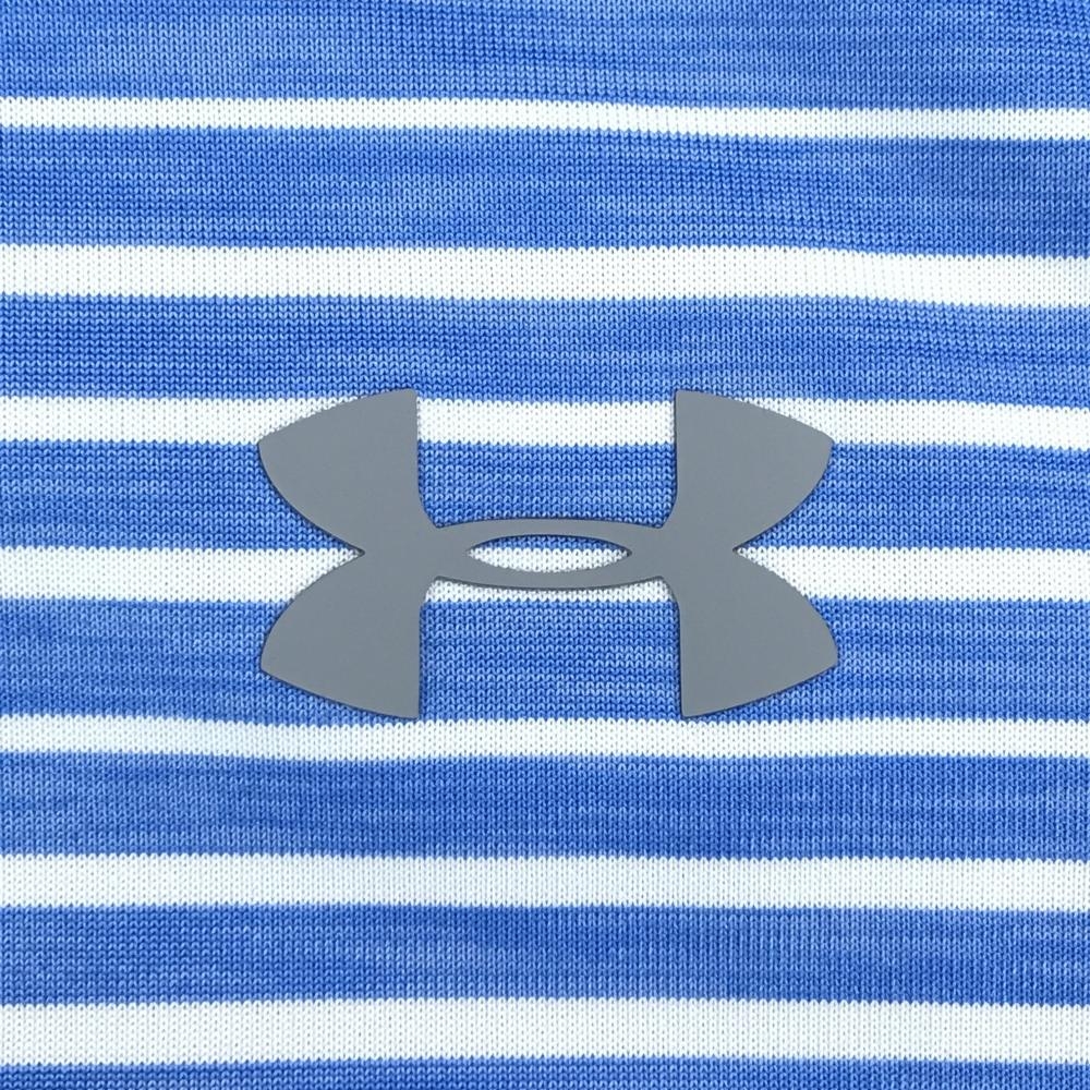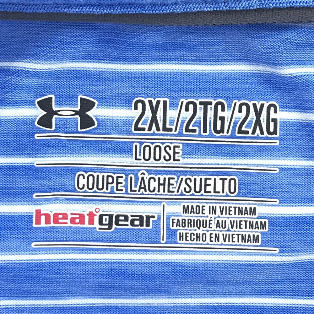 【超美品】アンダーアーマー 半袖ポロシャツ 杢ブルー×白 ボーダー メンズ 2XL/2TG/2XG ゴルフウェア 大きいサイズ UNDER ARMOUR