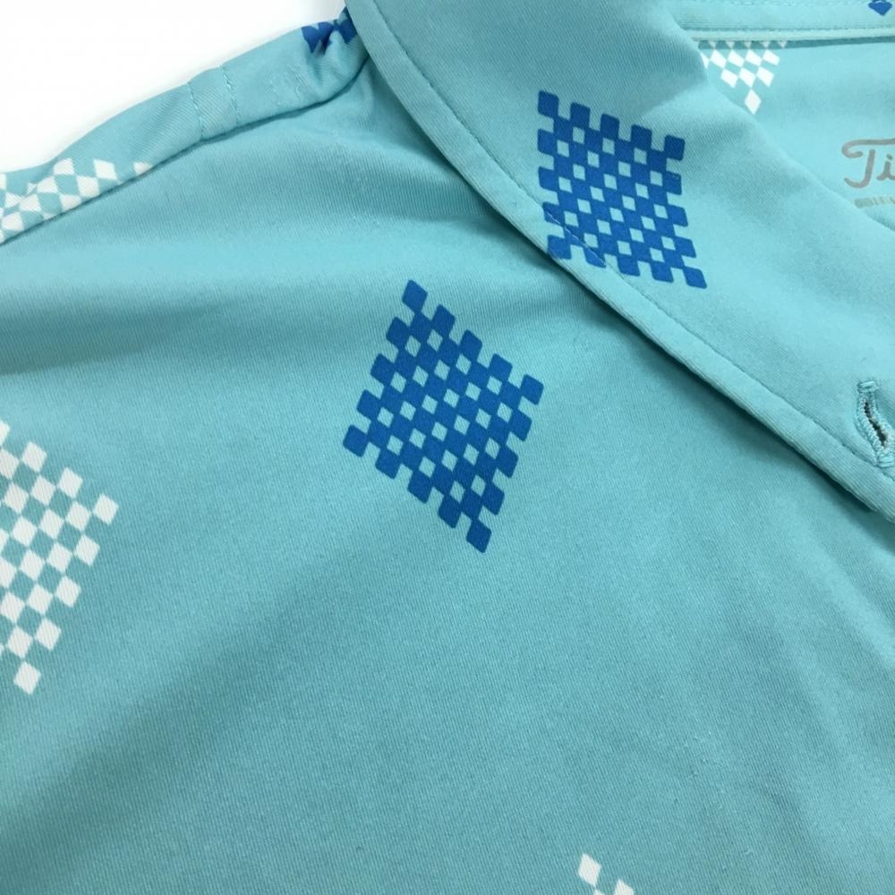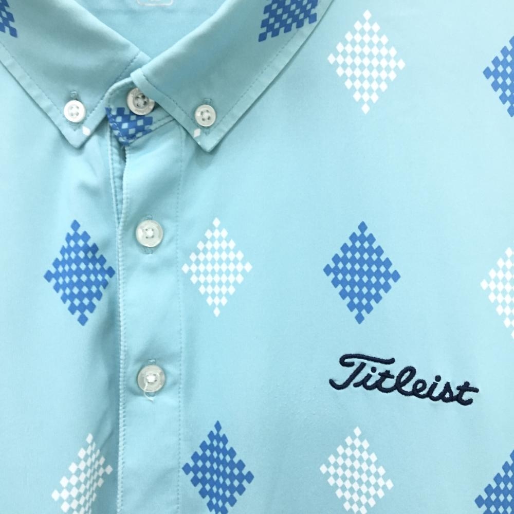 タイトリスト 半袖ポロシャツ ライトブルー×ブルー ダイヤ柄 ロゴ刺しゅう メンズ 3L ゴルフウェア 大きいサイズ TITLEIST