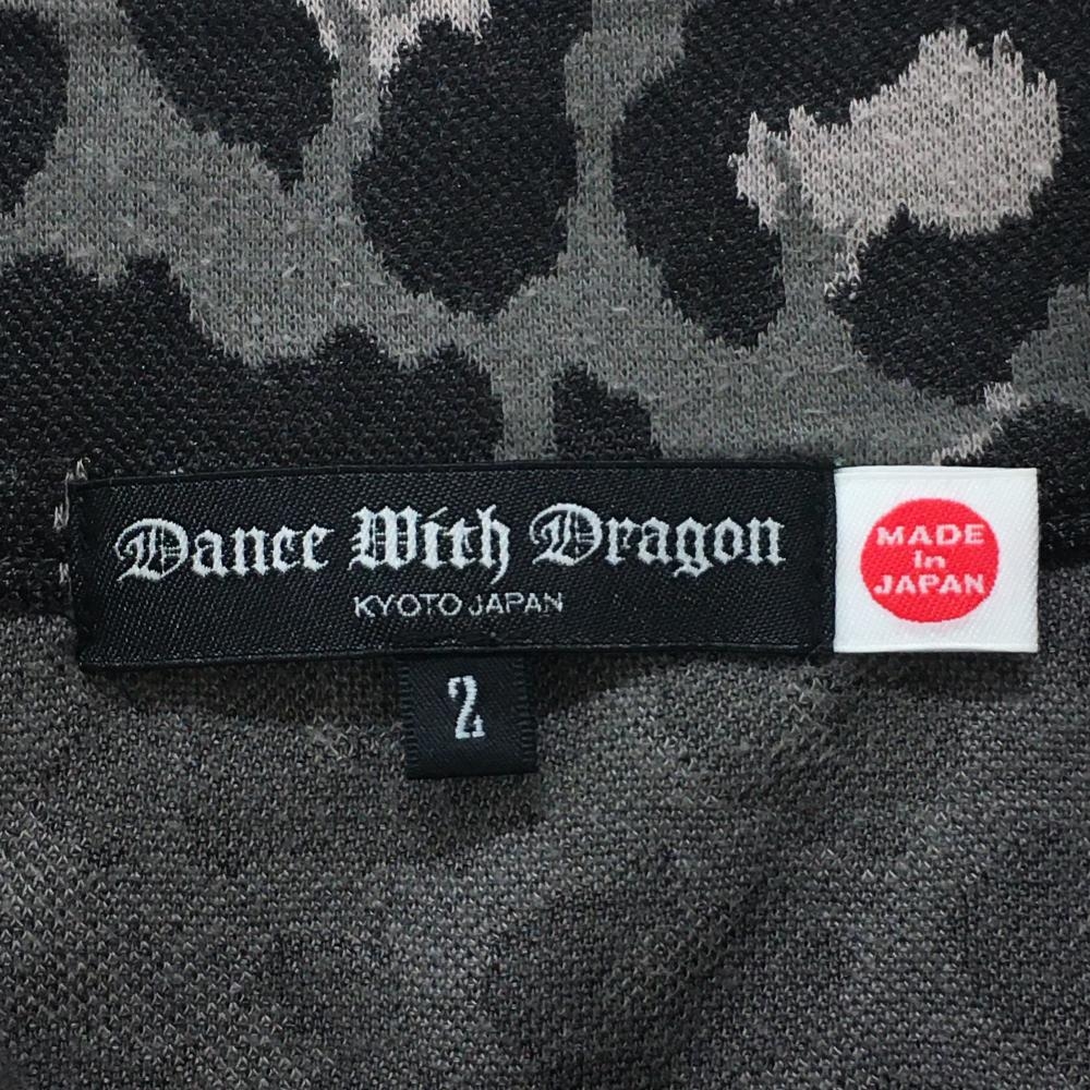 ダンスウィズドラゴン 長袖ハイネックシャツ グレー×黒 前身頃・ネックレオパード ヒョウ柄 メンズ 2(M) ゴルフウェア Dance With Dragon