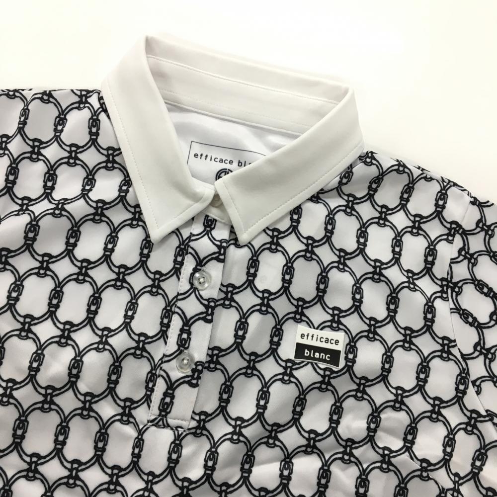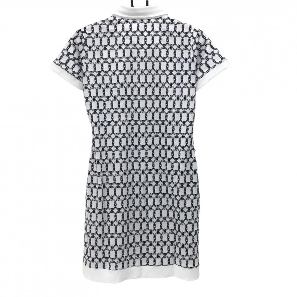 【新品】エフィカスブラン 半袖ポロワンピース 白×黒 総柄 インナーパンツ付 レディース L ゴルフウェア efficace