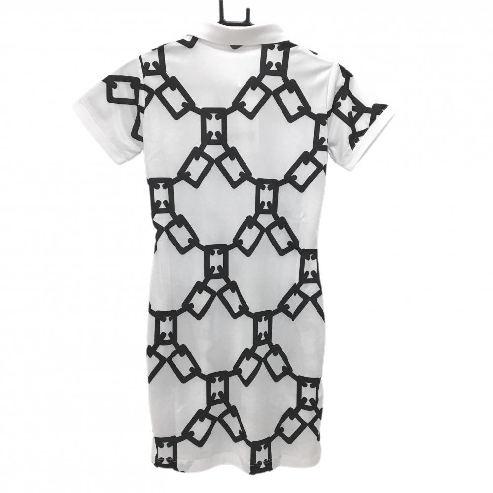 【新品】エフィカスブラン 半袖ポロワンピース 白×黒 総柄 インナーパンツ付 レディース M ゴルフウェア efficace