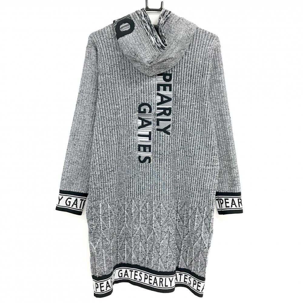 【超美品】パーリーゲイツ フード付きニットワンピース 杢グレー×黒 レディース 1(M) ゴルフウェア 2024年モデル PEARLY GATES