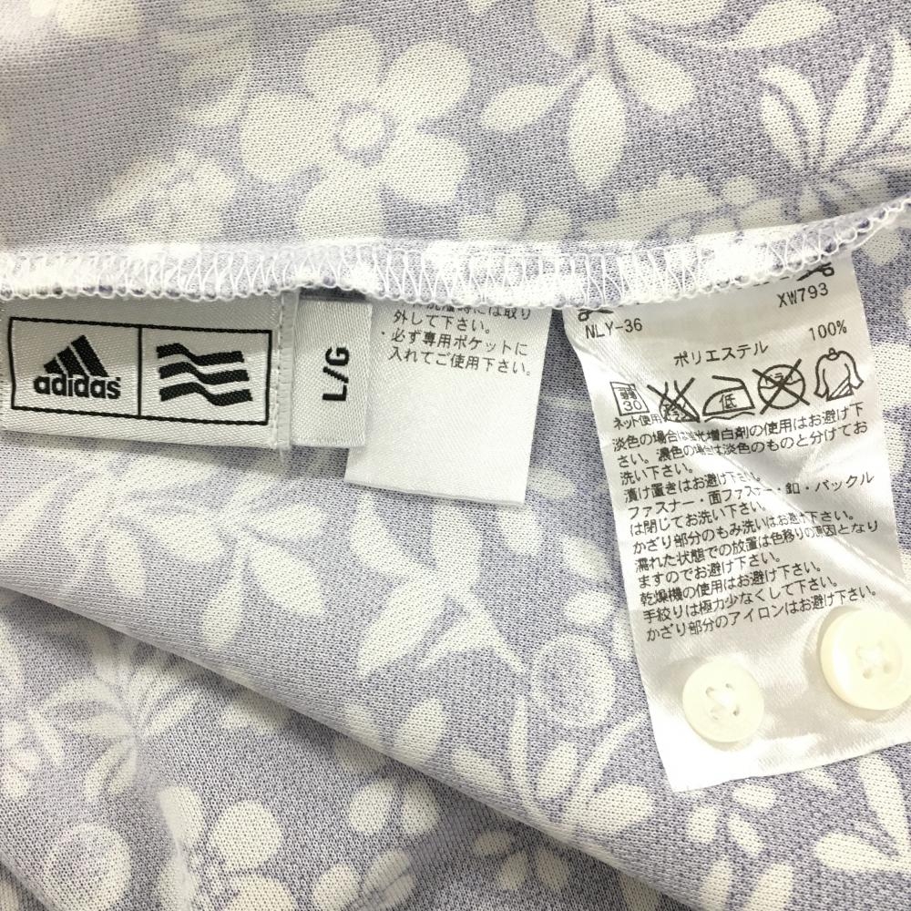 【超美品】アディダス 半袖ポロシャツ 白×パープルネイビー 花柄 グラデーション 袖ロゴボタンダウン レディース L/G ゴルフウェア adidas