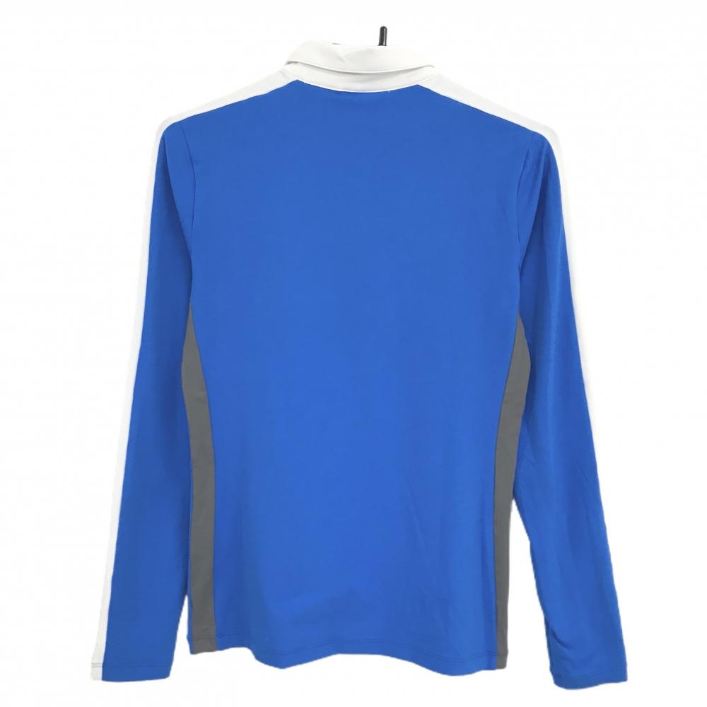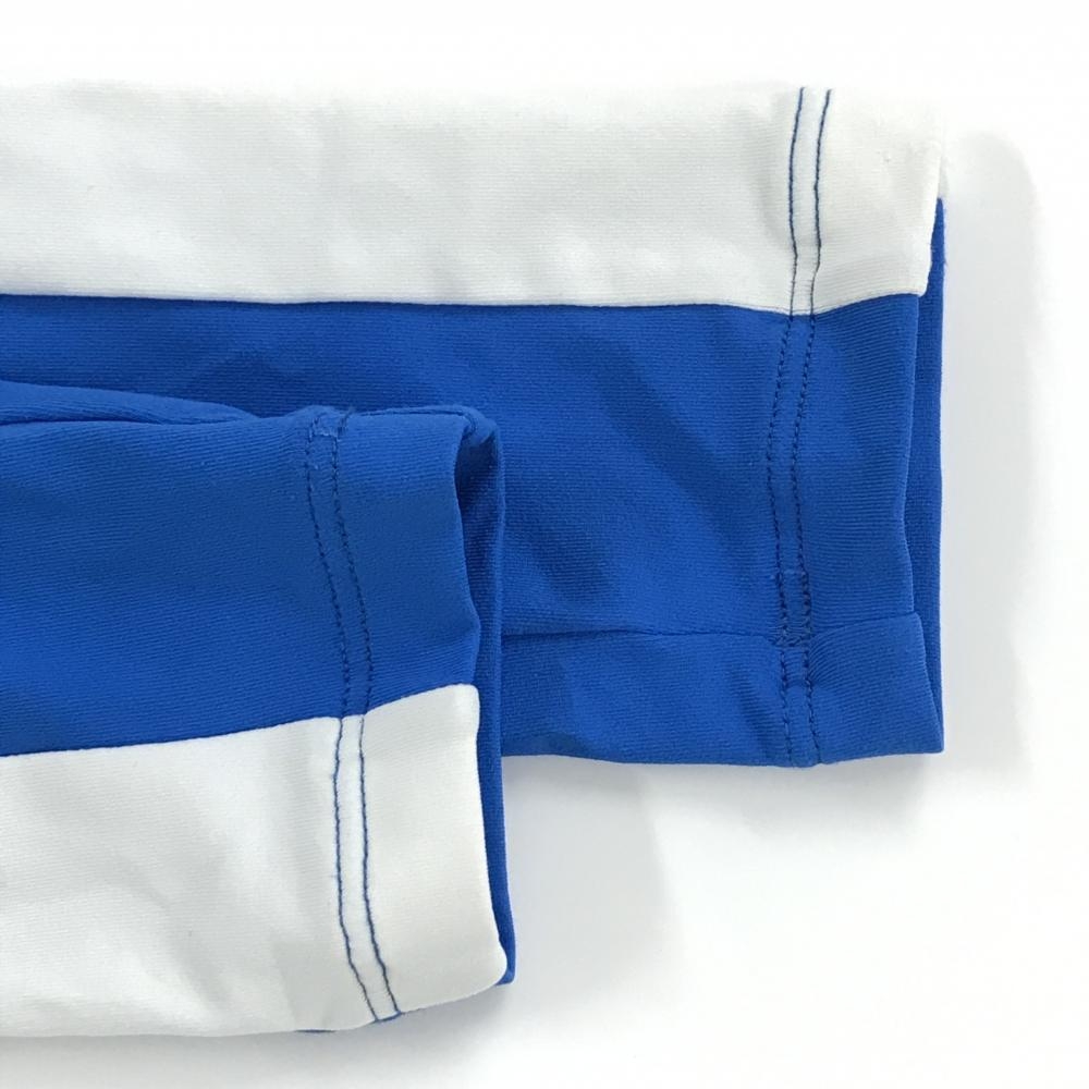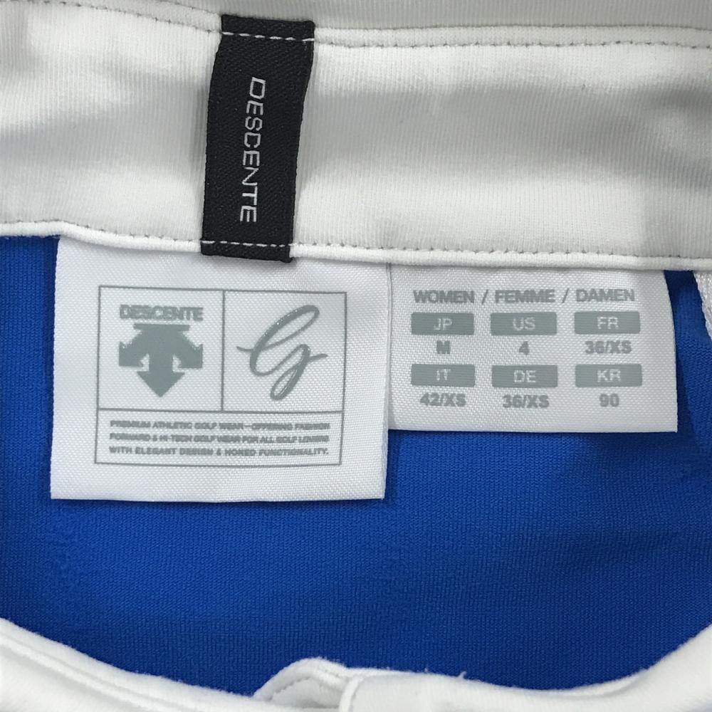 【美品】デサントゴルフ 長袖ポロシャツ ブルー×白 肩ロゴ ストレッチ サイド2ライン 中田英寿 レディース M ゴルフウェア DESCENTE