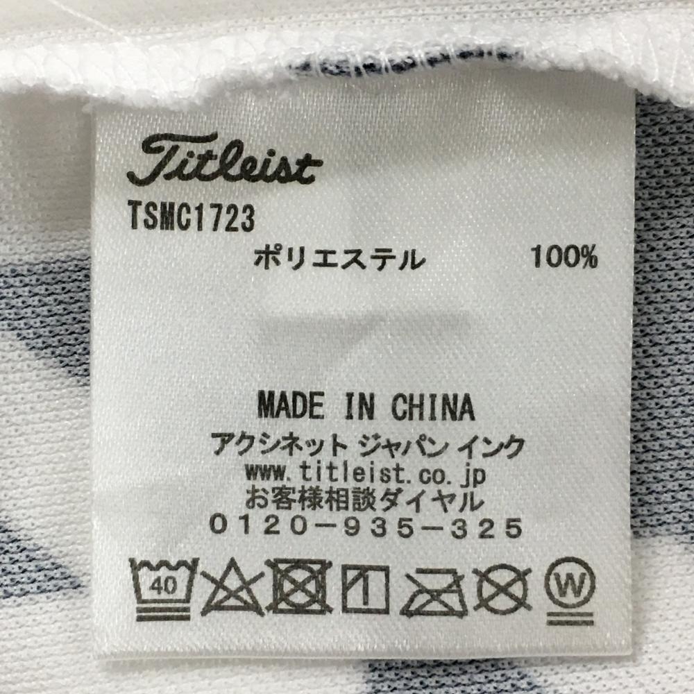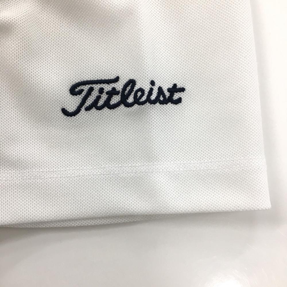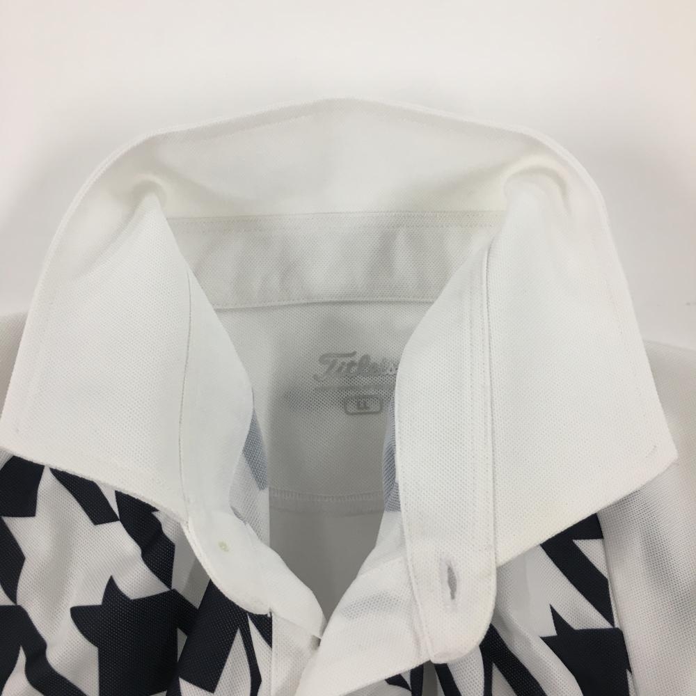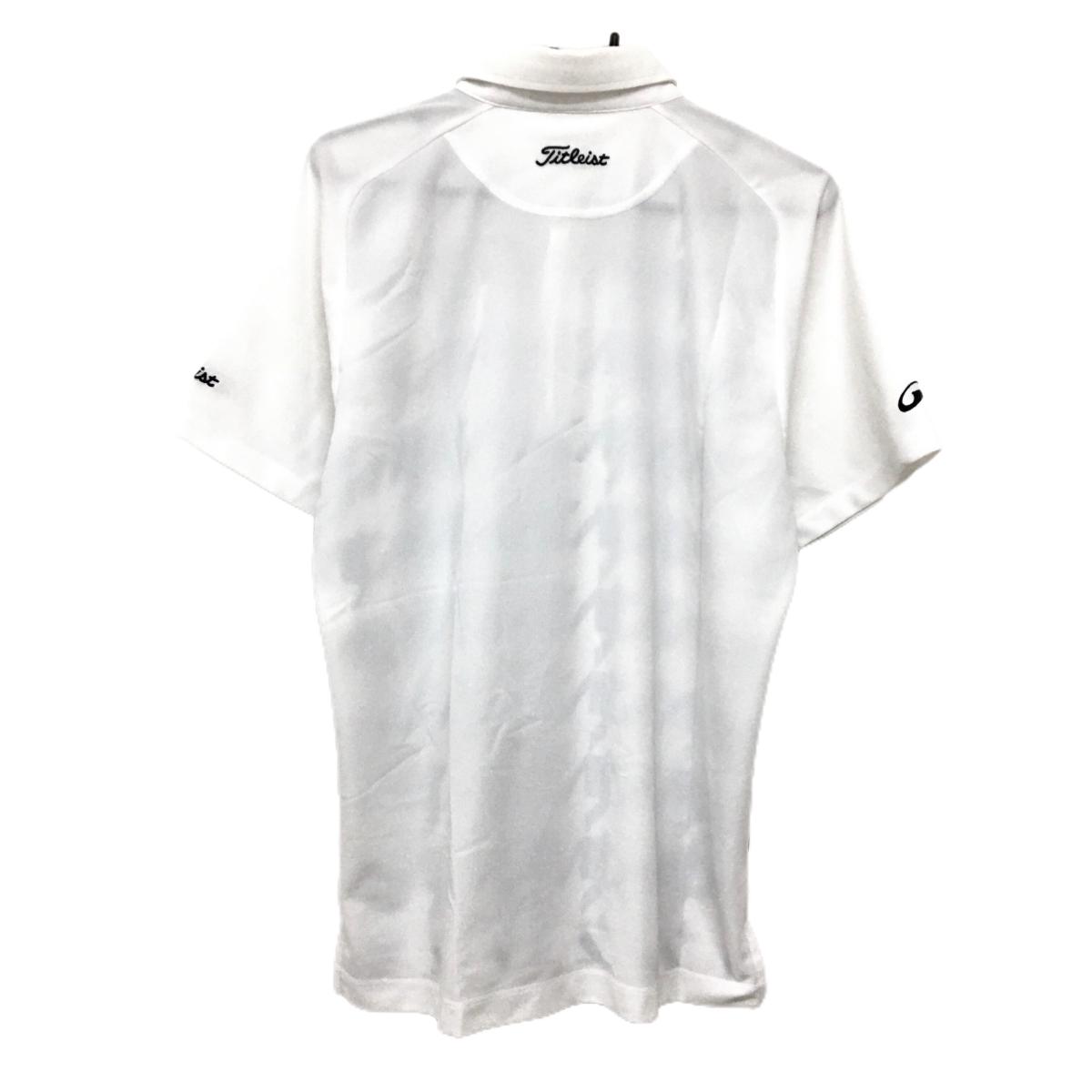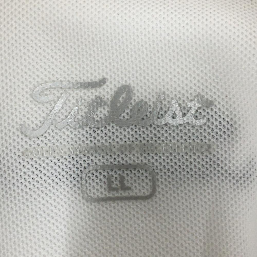【美品】タイトリスト 半袖ポロシャツ 白×ネイビー 前身頃千鳥柄 ロゴ刺しゅう メンズ LL ゴルフウェア TITLEIST
