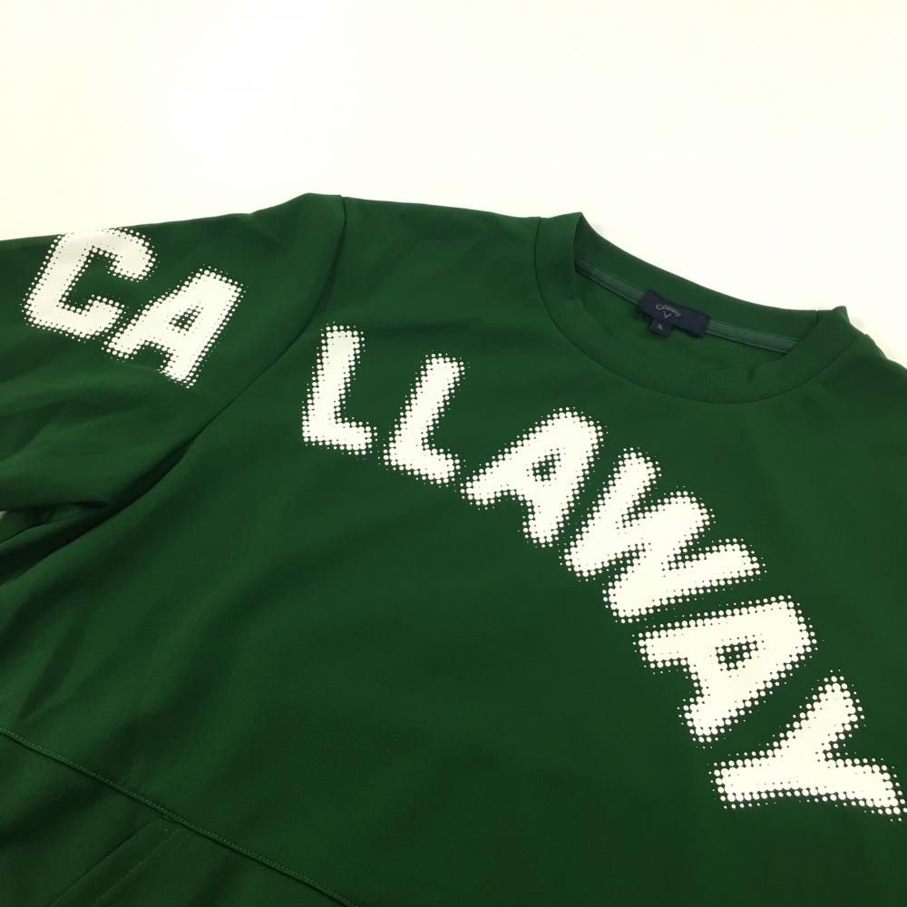 【超美品】キャロウェイ トレーナー グリーン×白 ロゴプリント 腹部ポケット メンズ 3L ゴルフウェア 2024年モデル 大きいサイズ Callaway