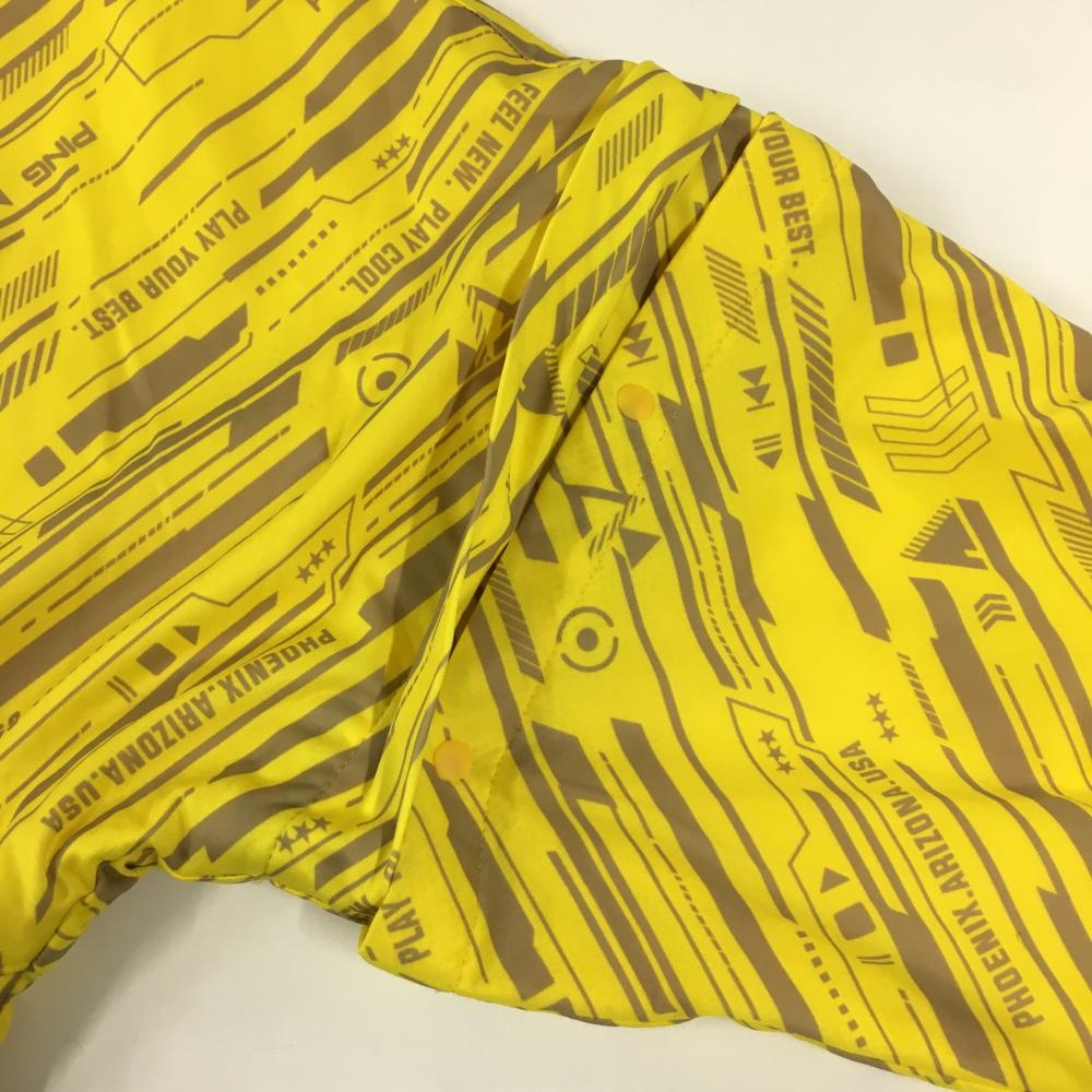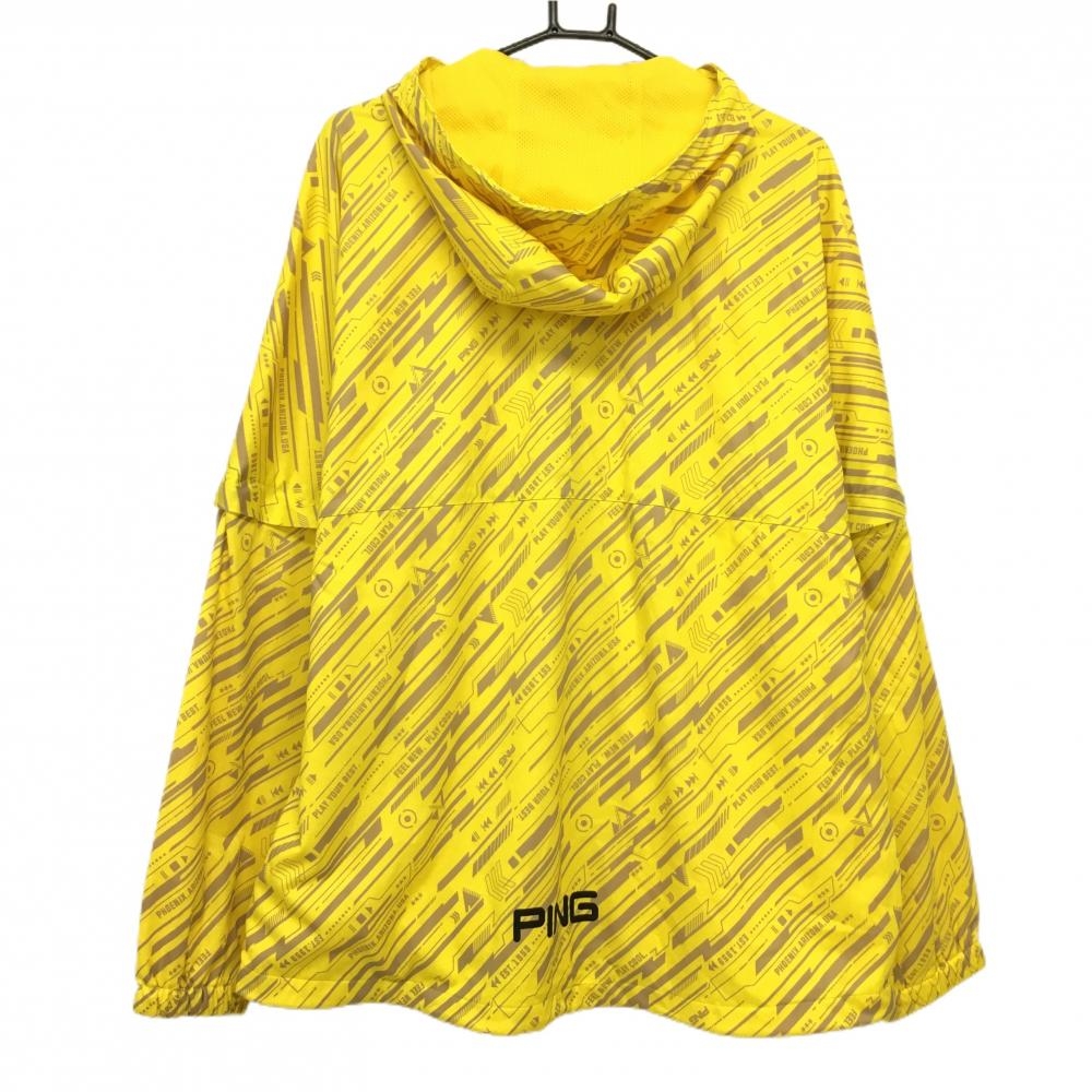 【超美品】ピン 2WAYジャケット イエロー×グレー 総柄 フード 裏地メッシュ 袖着脱可 メンズ 3L ゴルフウェア 大きいサイズ PING