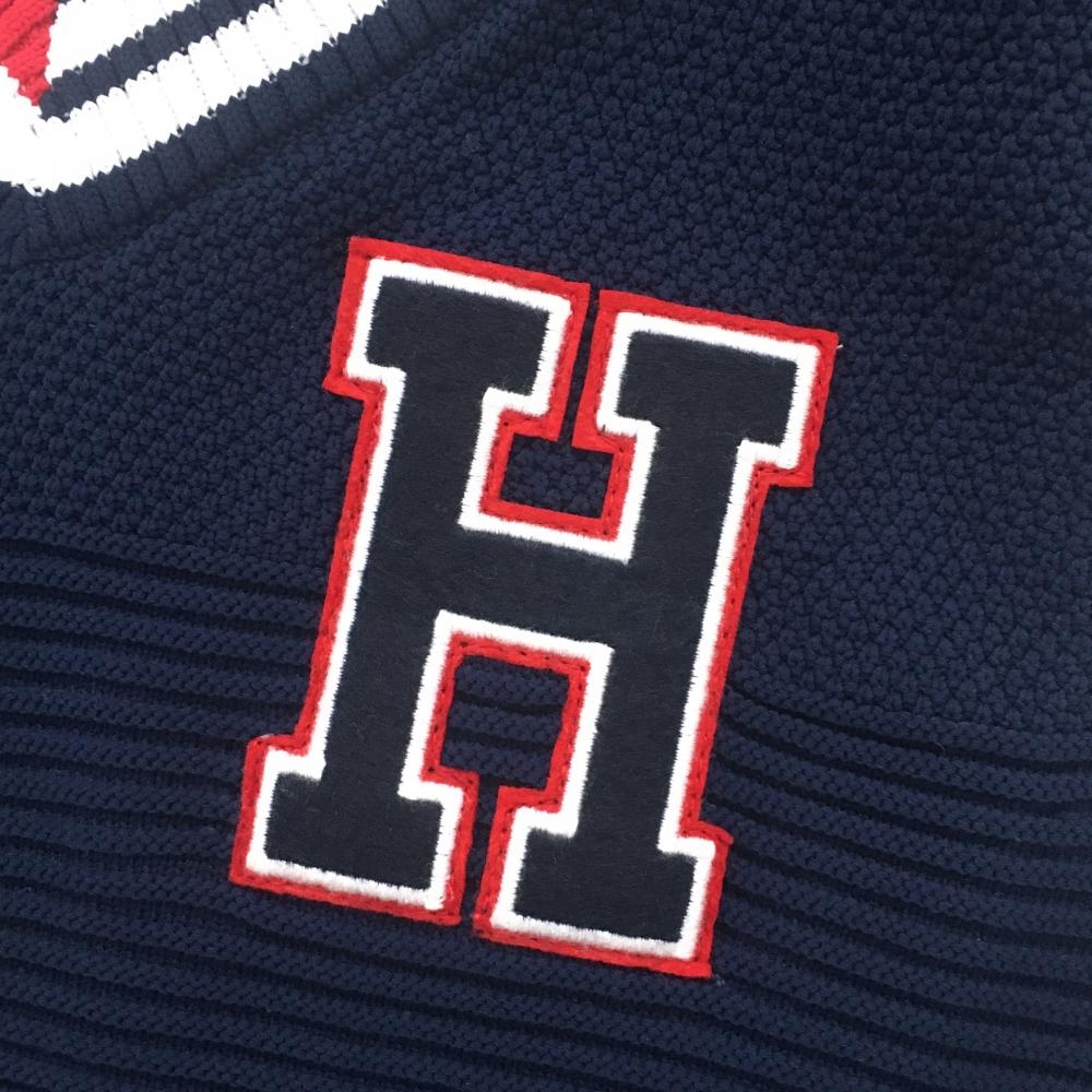 【新品】トミーヒルフィガーゴルフ ニットベスト ネイビー×レッド×白 胸ロゴワッペン レディース L ゴルフウェア Tommy Hilfiger Golf