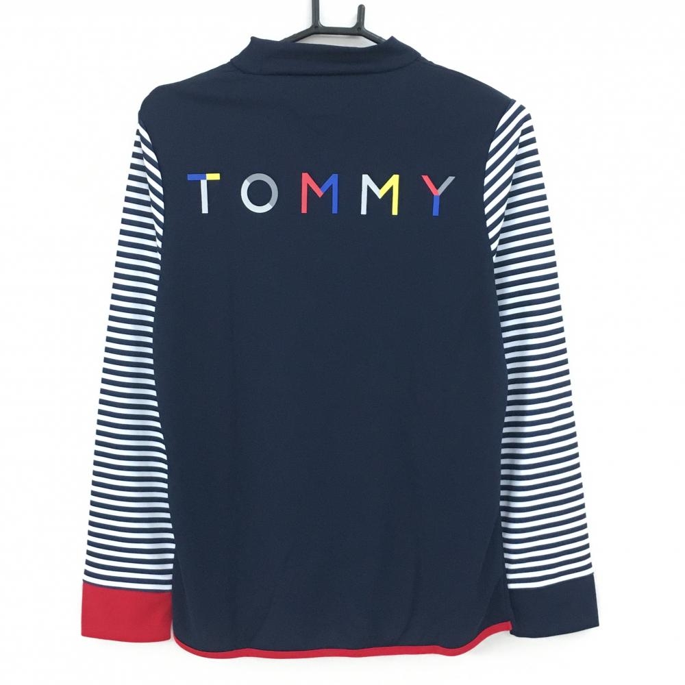 【新品】トミーヒルフィガーゴルフ 長袖ハイネックシャツ ネイビー×白×レッド レディース LL ゴルフウェア Tommy Hilfiger Golf