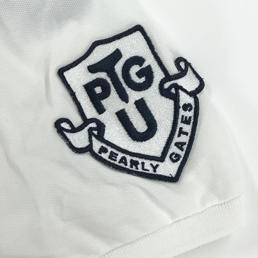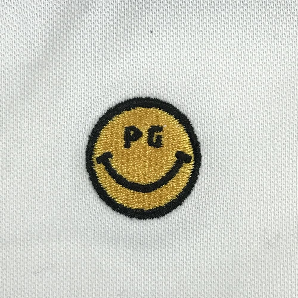 パーリーゲイツ 半袖ポロシャツ 白×ネイビー フェルトロゴ ニコちゃん スマイル レディース 0(S) ゴルフウェア PEARLY GATES