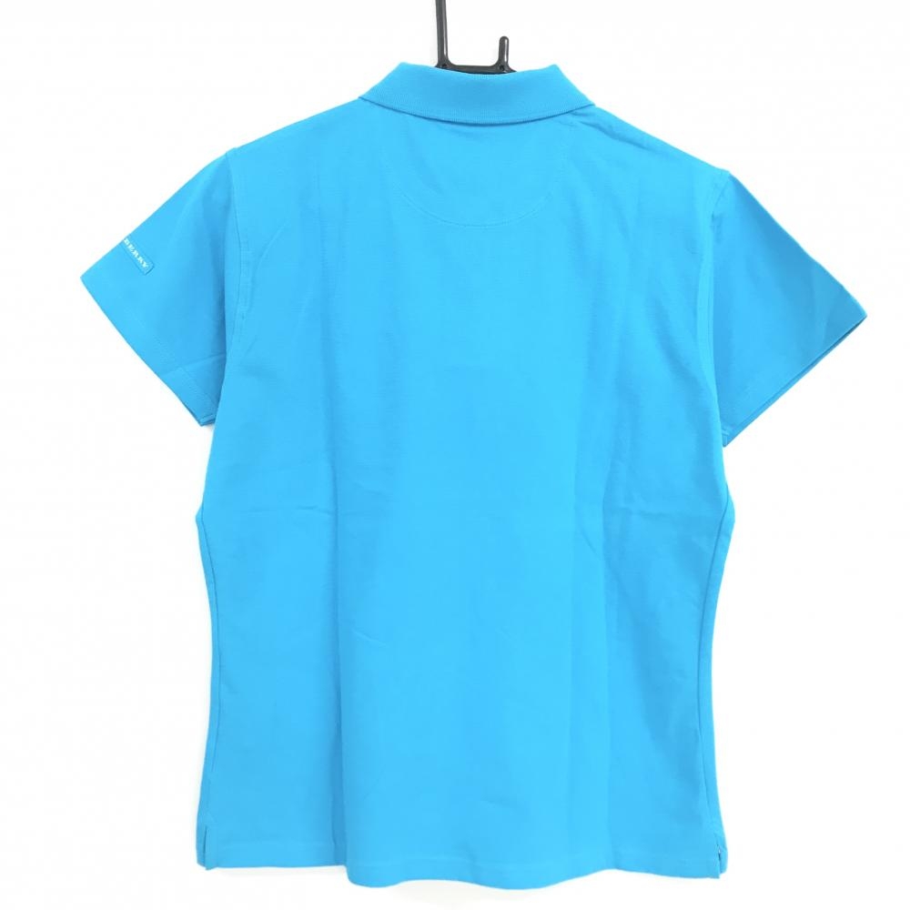 【新品】バーバリーゴルフ 半袖ポロシャツ ターコイズブルー 袖ロゴ レディース L ゴルフウェア BURBERRY GOLF