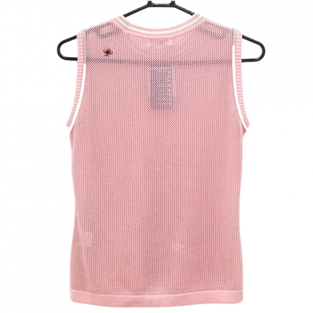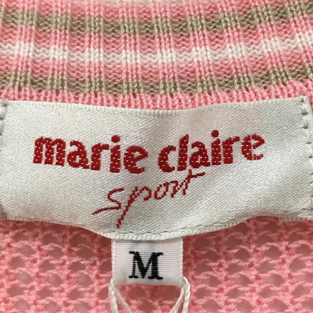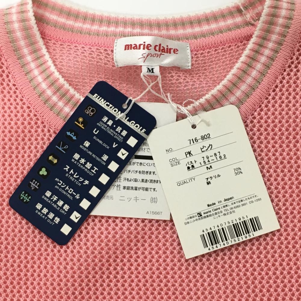 マリクレールスポール ニットメッシュベスト ピンク 左裾花柄 コットン混 紙タグ付 レディース M ゴルフウェア marie claire