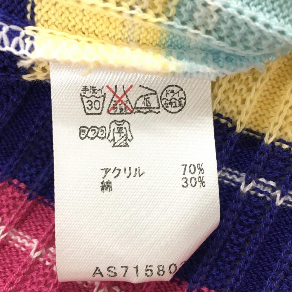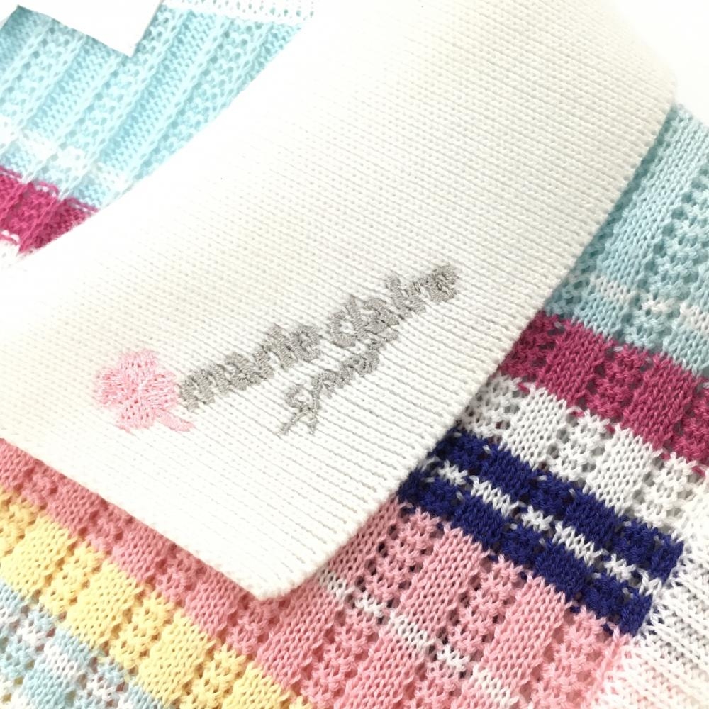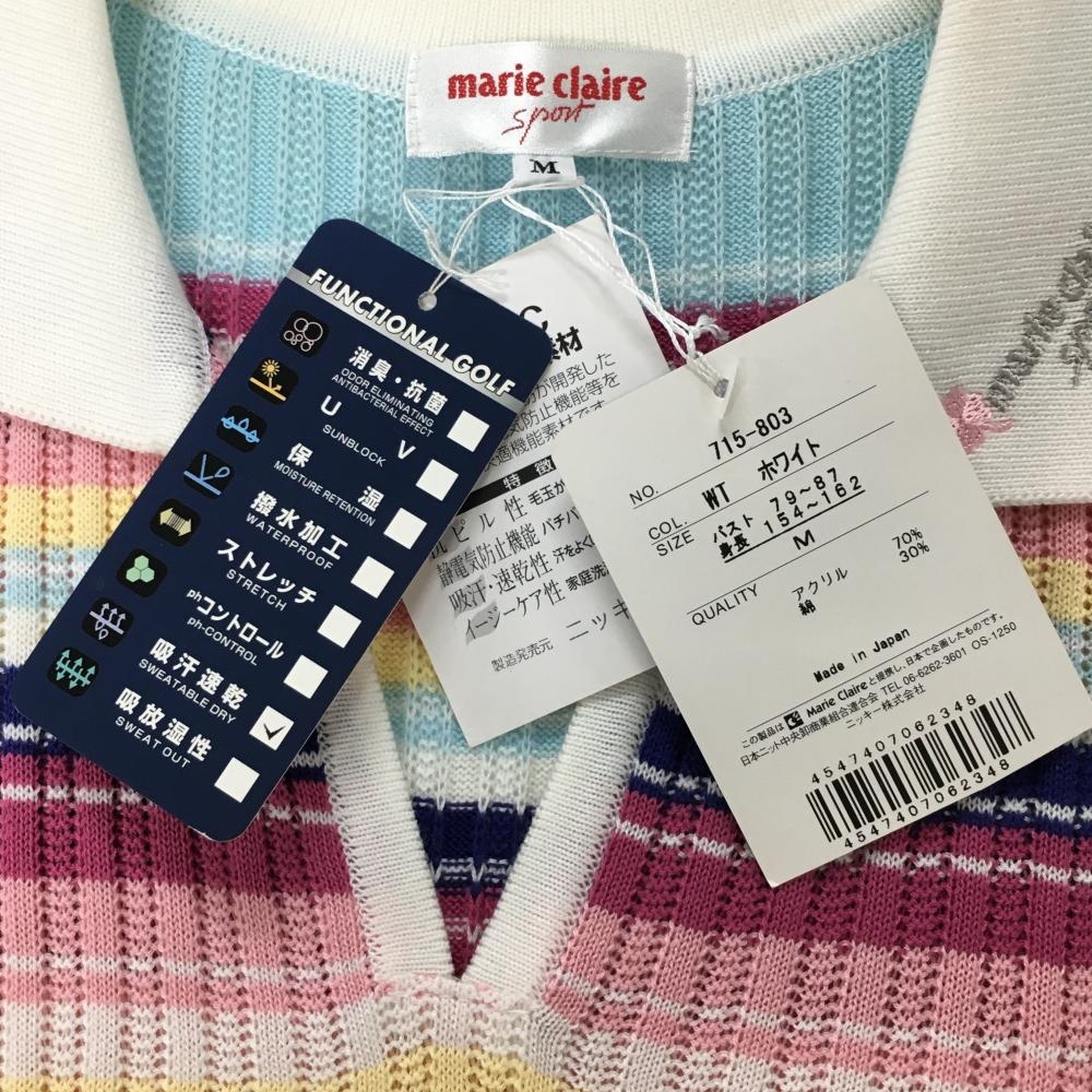 【新品】マリクレールスポール ニットスキッパーベスト 白×マルチカラー リブ編み 吸汗速乾 レディース M ゴルフウェア marie claire