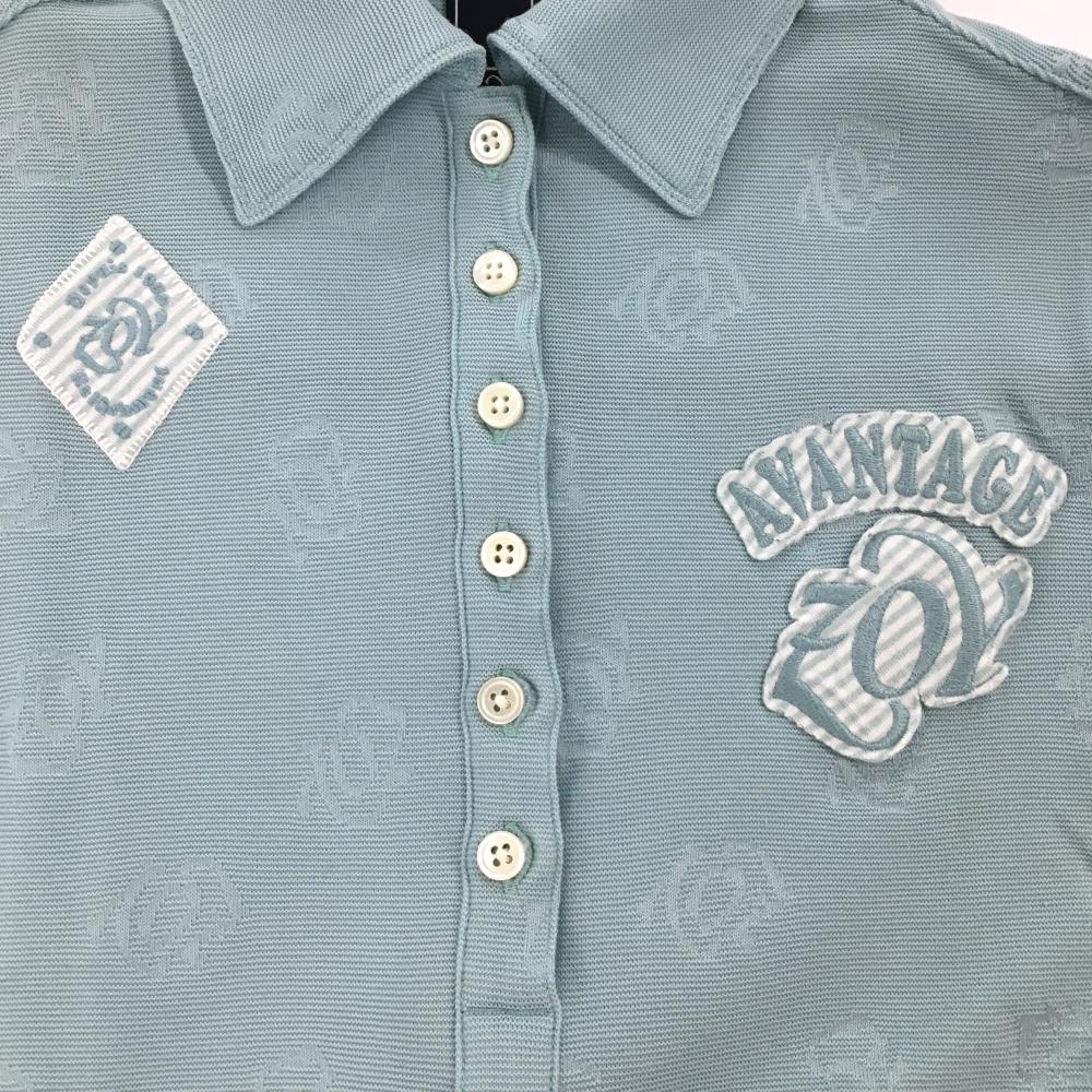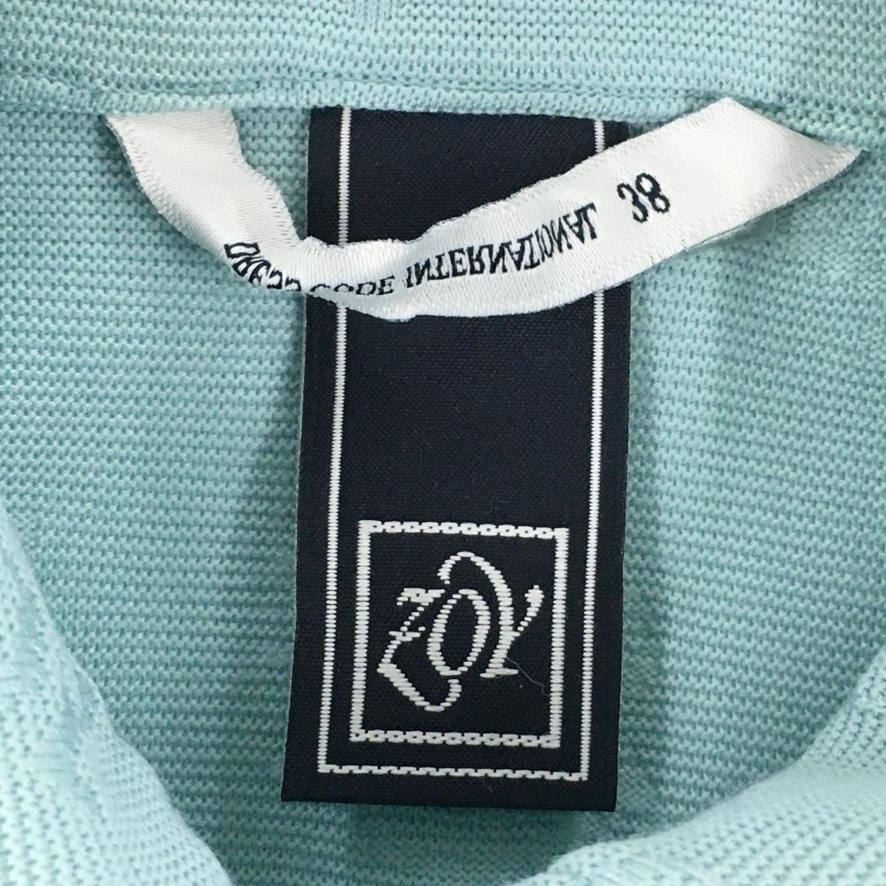 【超美品】ゾーイ 半袖ポロシャツ ライトブルー ロゴ地模様 胸元ワッペン レディース 38(M) ゴルフウェア ZOY