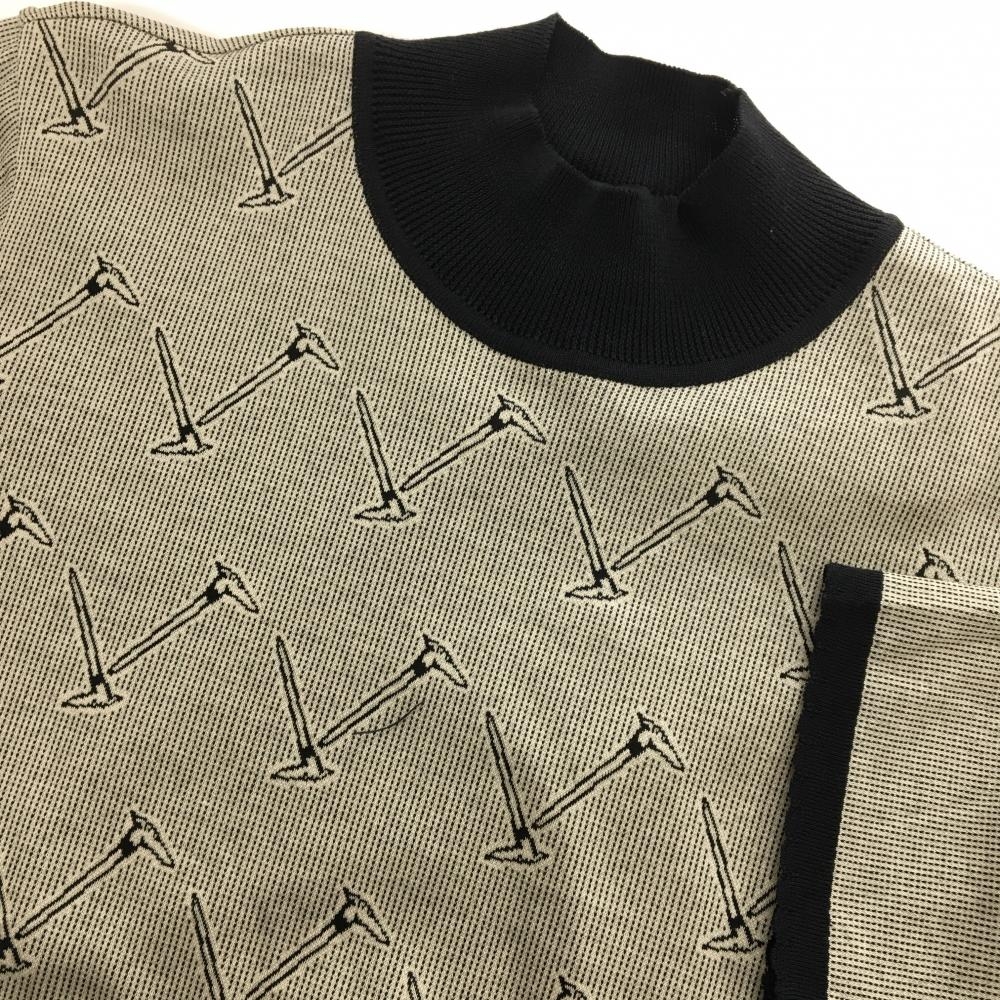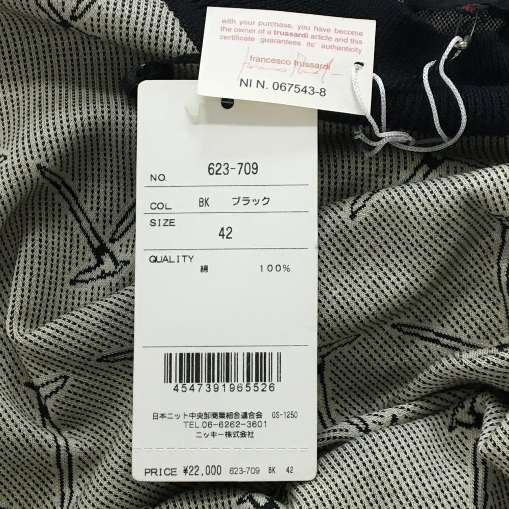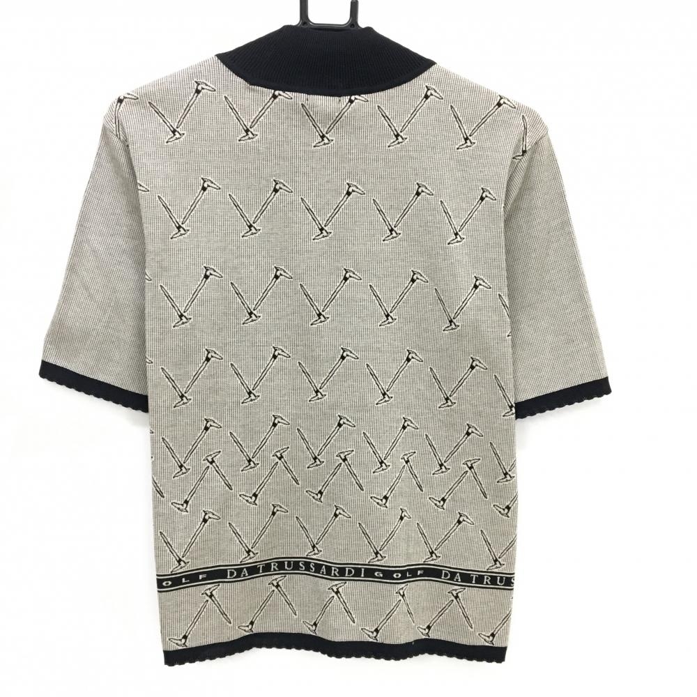 【未使用品】トラサルディゴルフ 半袖セーター 黒×ベージュ 総柄 コットン100% ニット レディース 42 ゴルフウェア