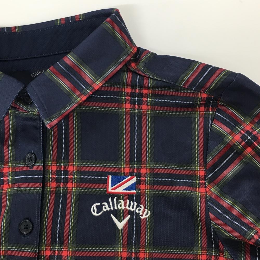 【超美品】キャロウェイ 長袖ポロシャツ ネイビー×レッド チェック ロゴ刺しゅう レディース M ゴルフウェア Callaway