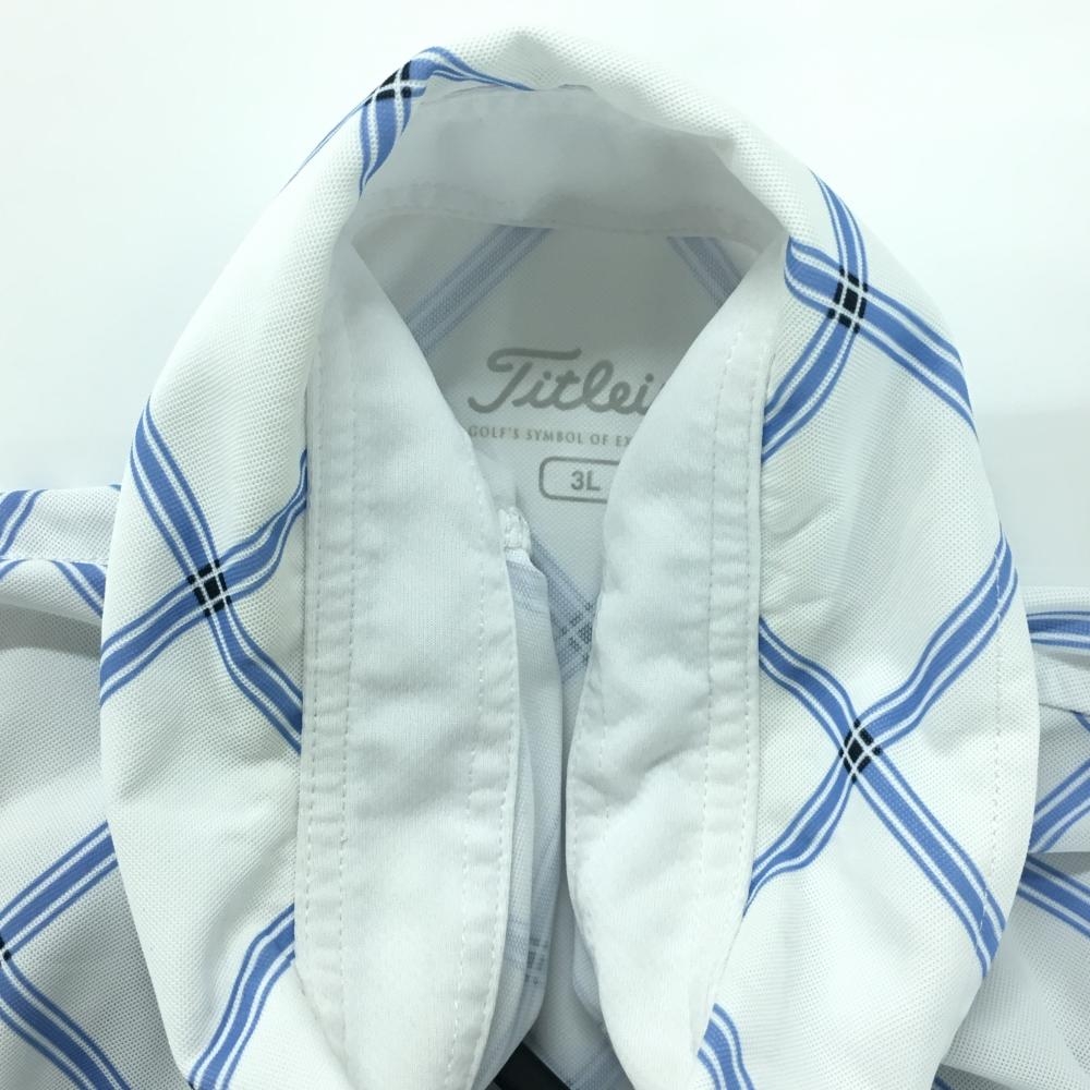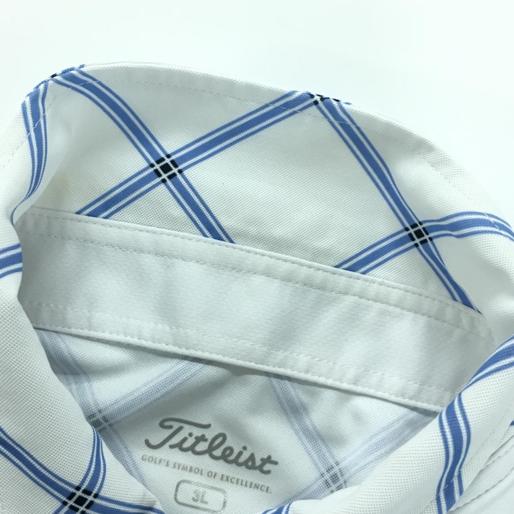 タイトリスト 半袖ポロシャツ 白×ブルー 斜め格子柄 ロゴ刺しゅう メンズ 3L ゴルフウェア 大きいサイズ TITLEIST
