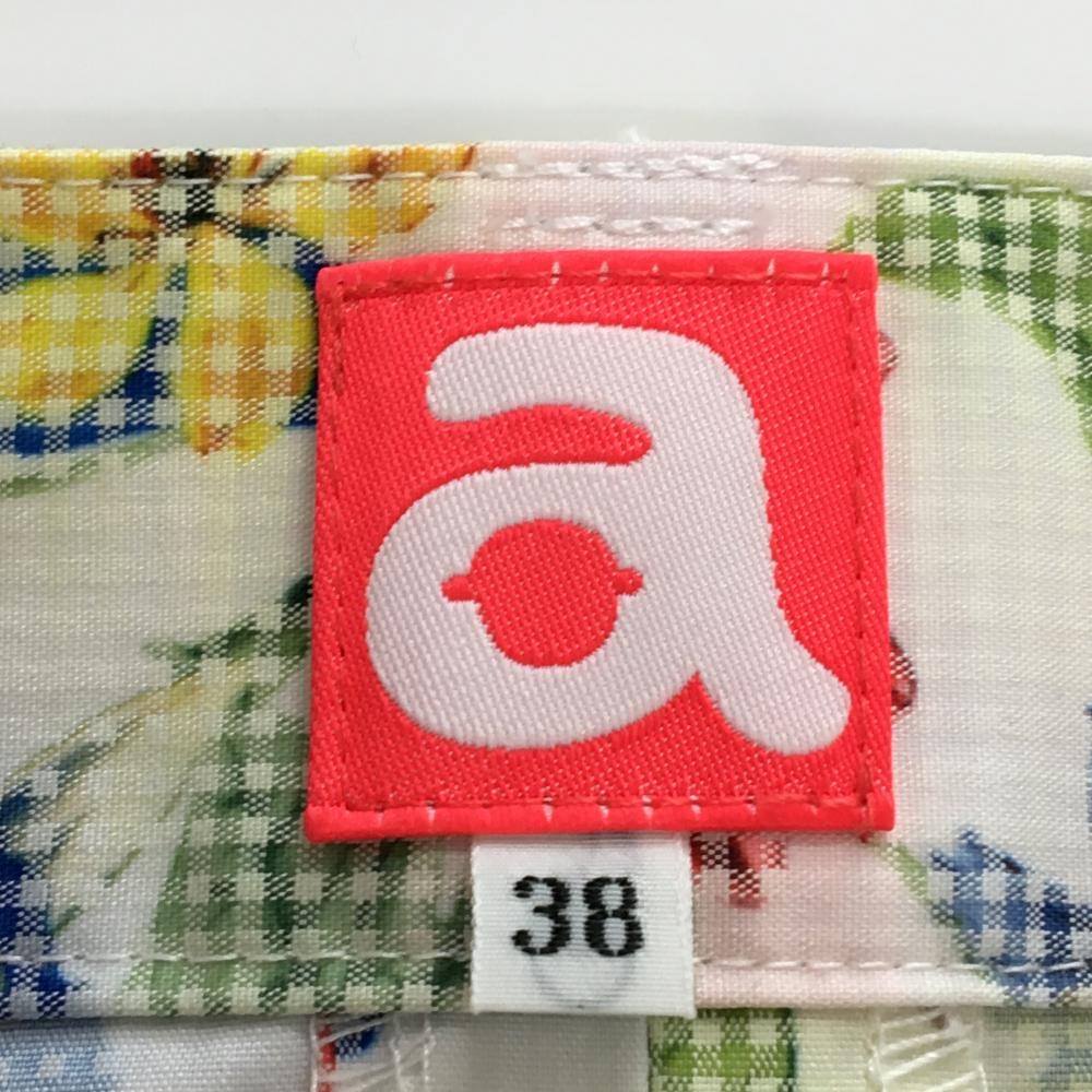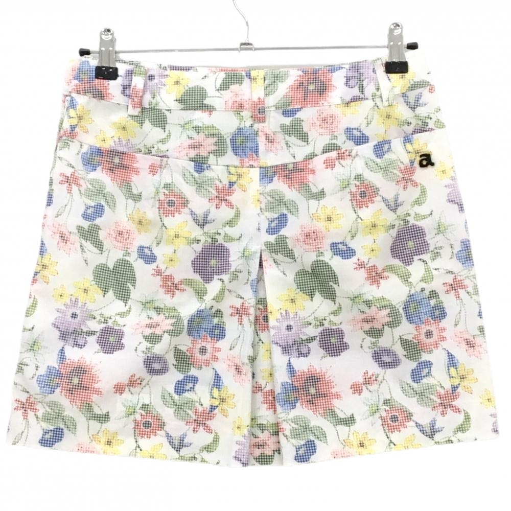 【超美品】アルチビオ スカート 白×マルチカラー 総柄 花 リーフ サイドライン ストレッチ レディース 38(M) ゴルフウェア archivio