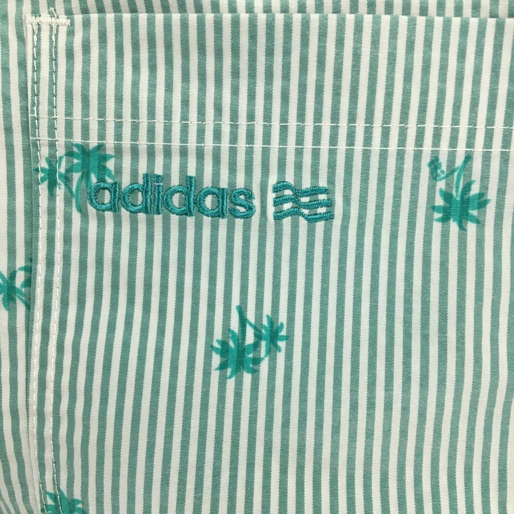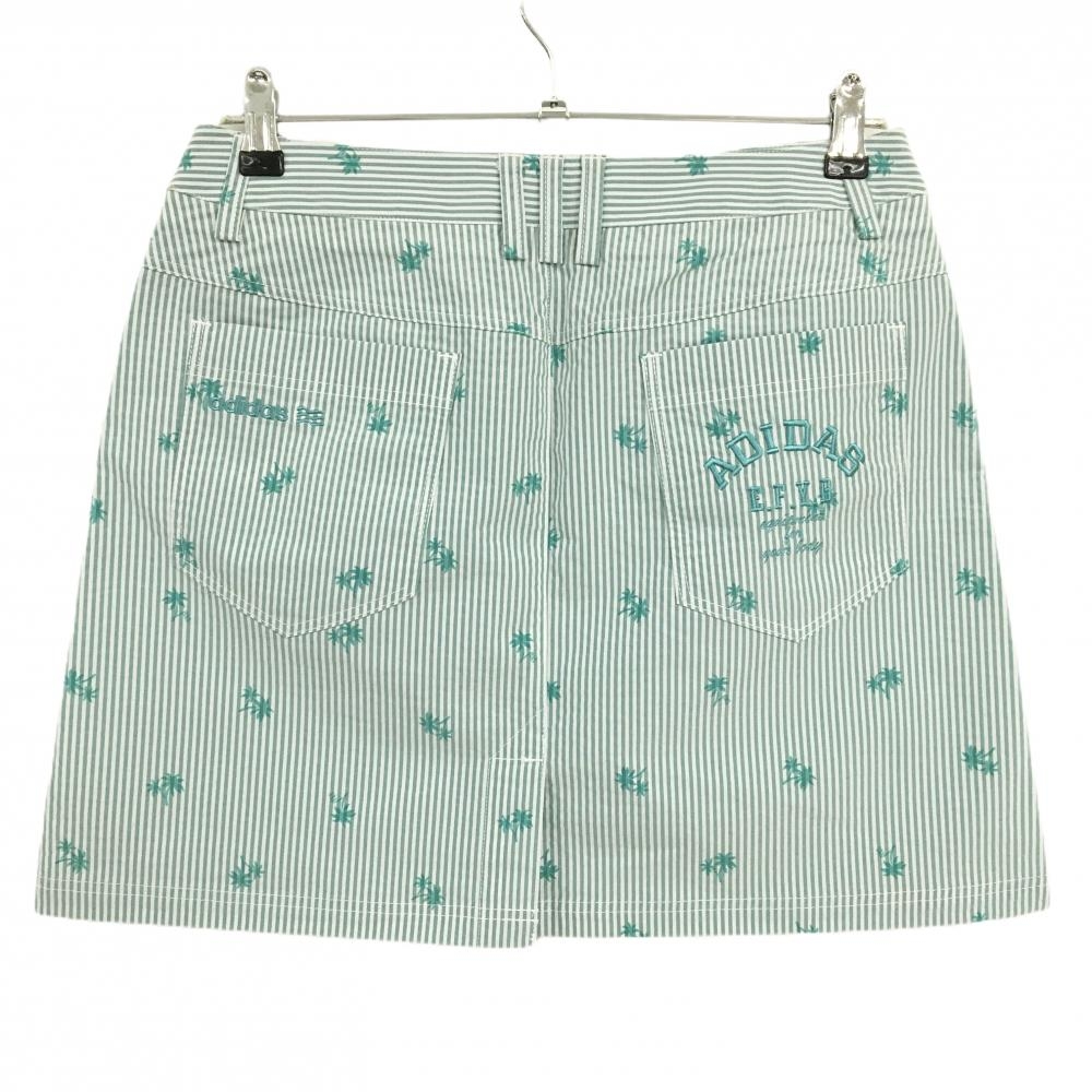 【超美品】アディダス スカート 白×グリーン ストライプ ヤシの木 サッカー生地風 レディース L/G ゴルフウェア adidas