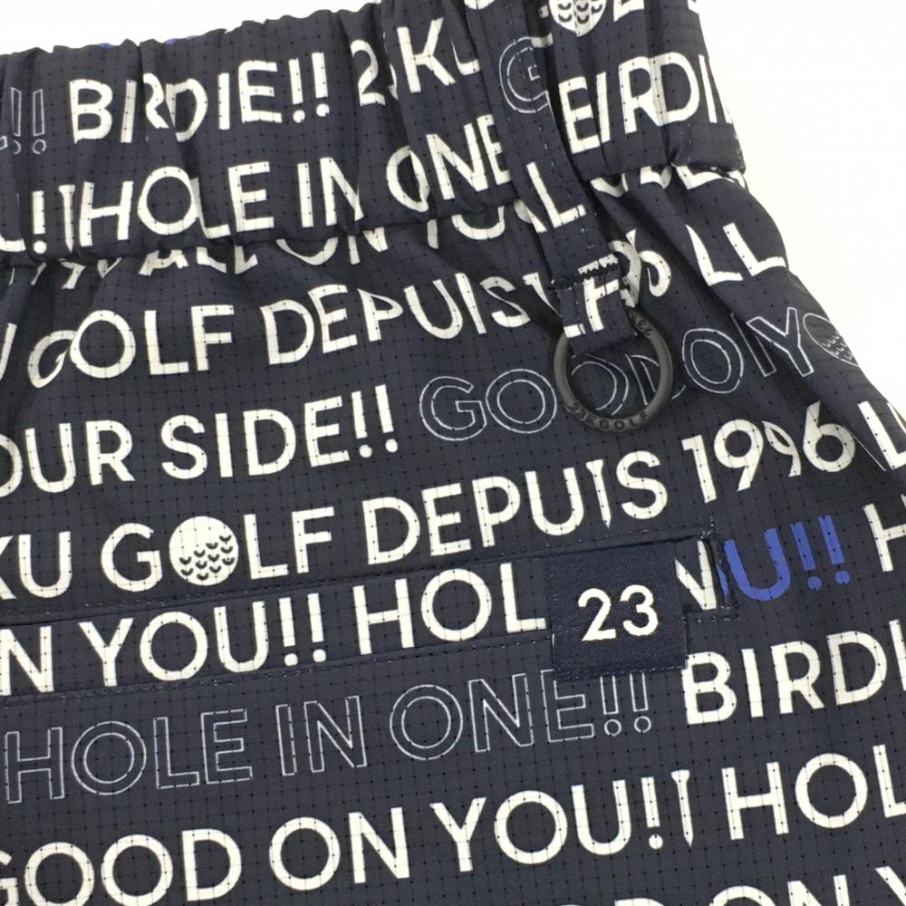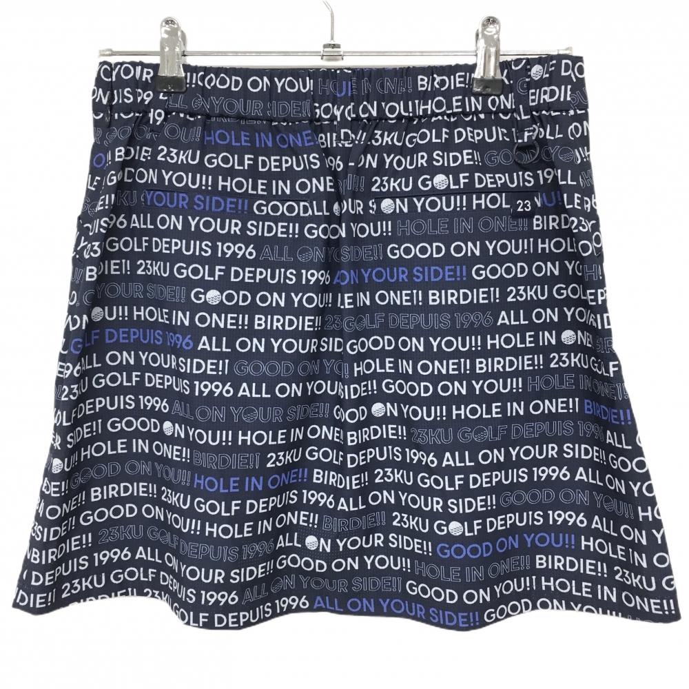 【超美品】23区ゴルフ スカート ネイビー×白 英字総柄 メッシュ調織生地 ウエスト後ろゴム レディース II ゴルフウェア 23区