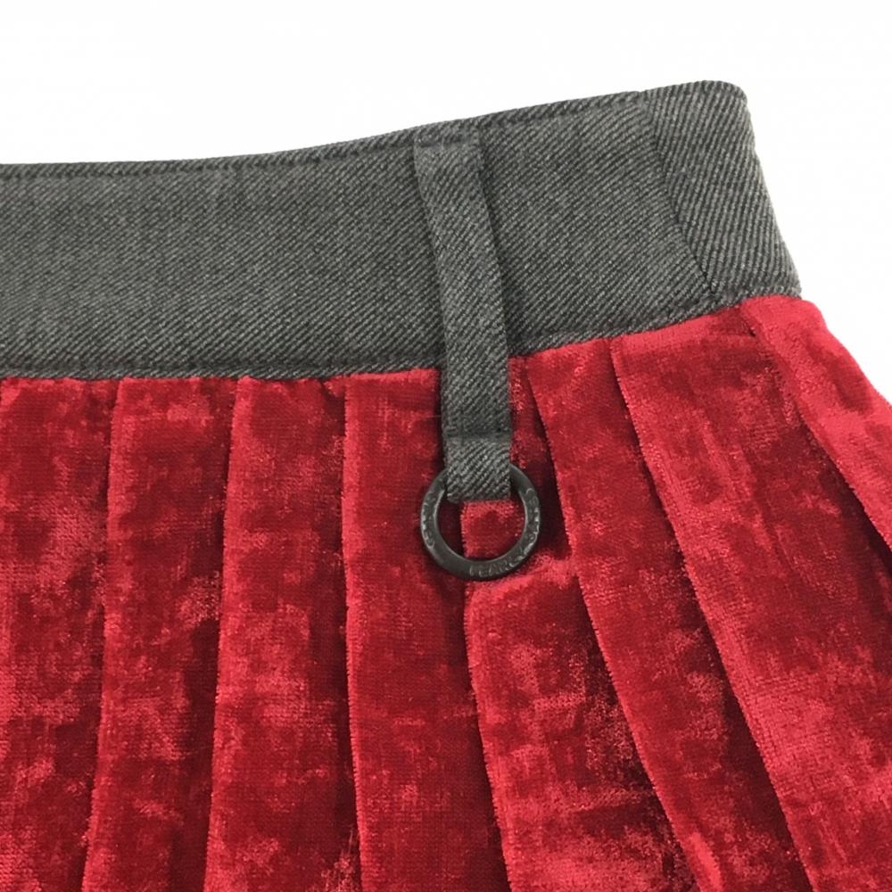 【美品】パーリーゲイツ スカート 杢グレー×レッド系 一部プリーツレイヤード調 ストレッチ レディース 1(M) ゴルフウェア PEARLY GATES