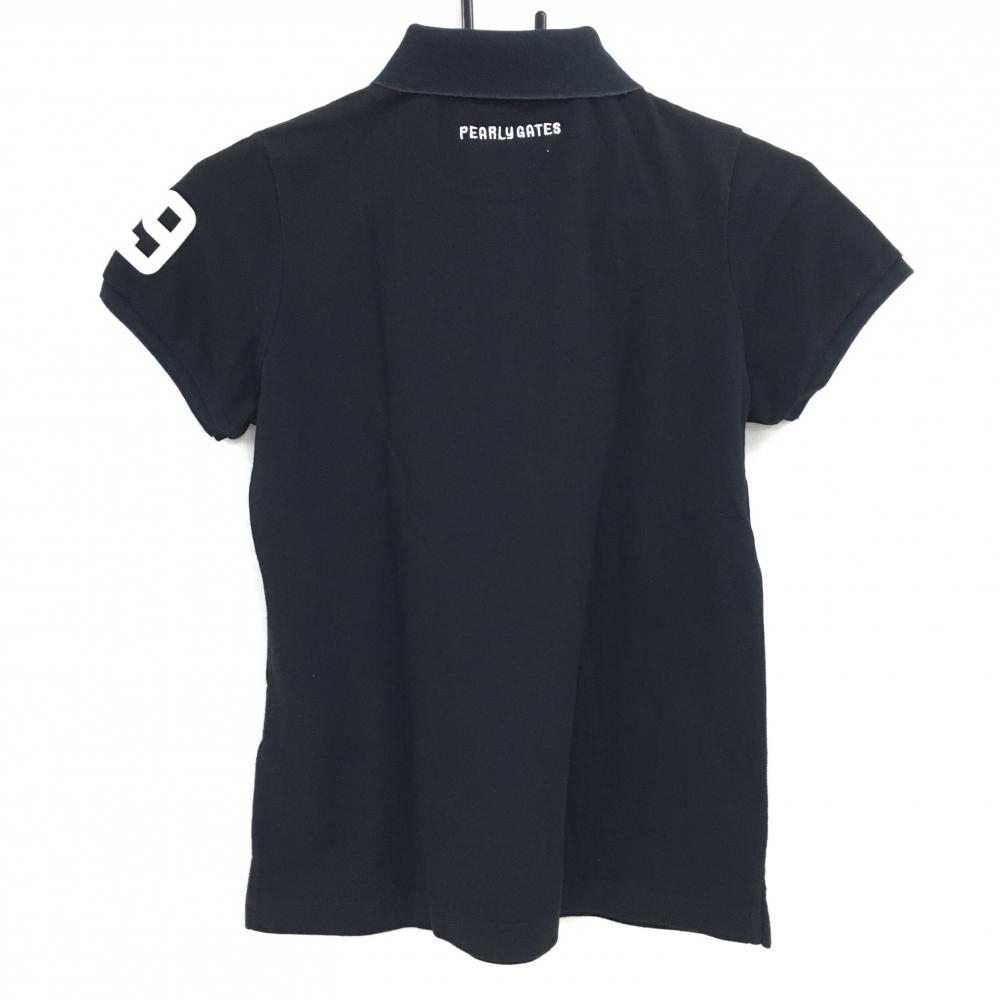 パーリーゲイツ 半袖ポロシャツ 黒 フロッキーロゴ レディース 0(S) ゴルフウェア PEARLY GATES