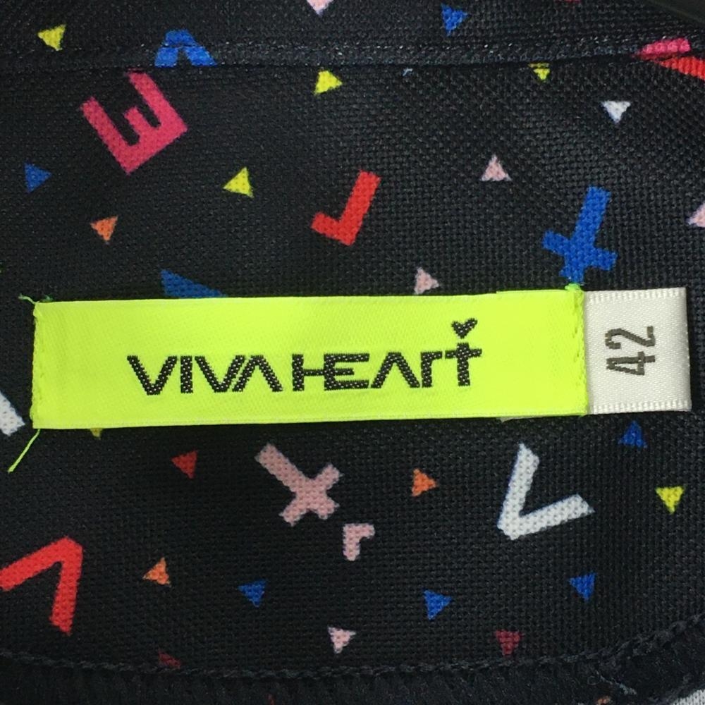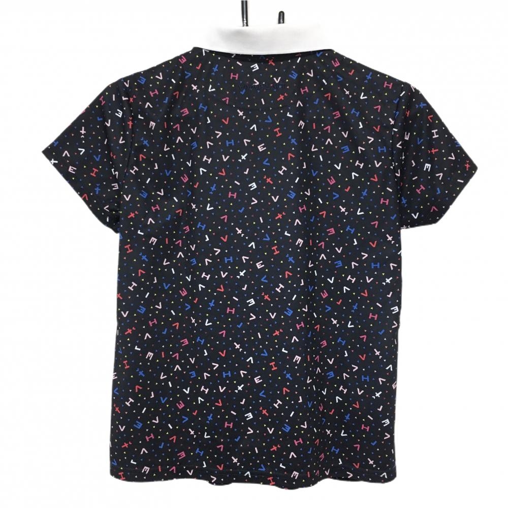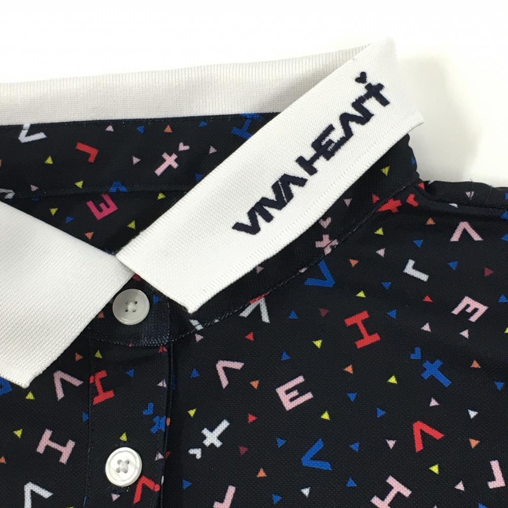 【美品】ビバハート 半袖ポロシャツ ネイビー×マルチカラー ロゴ総柄 レディース 42(L) ゴルフウェア VIVA HEART